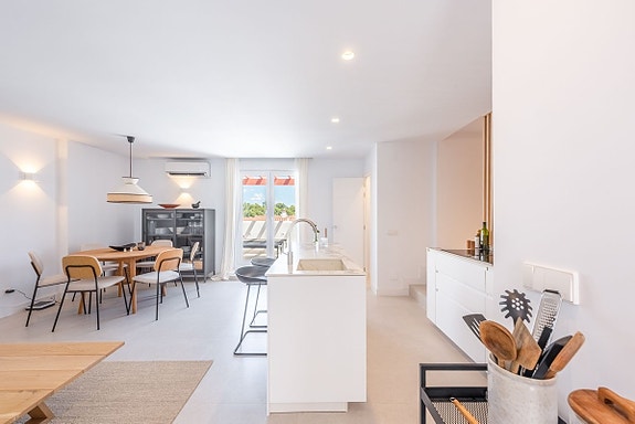 Velkommen til denne stilfulle duplex-penthousen som er totalrenovert i skandinavisk stil. Boligen ligger i en svært ettertraktet urbanisasjon i Nueva Andalucía, med gangavstand til Centro Plaza, Mercadona, restauranter, Puerto Banús og stranden.