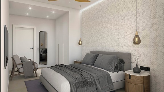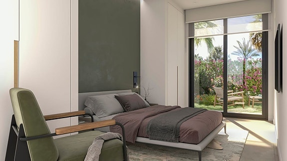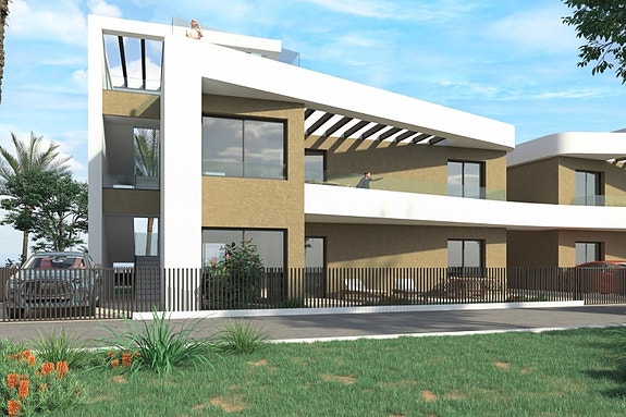 Hver leilighet har en åpen løsning som kobler kjøkkenet til den lyse stuen, tre romslige soverom med innebygde garderober og to bad, hvorav ett tilhører hovedsoverommet. Leilighetene leveres med elektriske persienner, forhåndsinstallert A/C, hvitevarer og dusjvegger på badene.Komplekset har flotte felles hager, tre bassenger for både voksne og barn, to jacuzzier, et treningsstudio og en lekeplass for barn. Det ligger i et sjarmerende område, nær flere golfbaner og kjøpesentre.