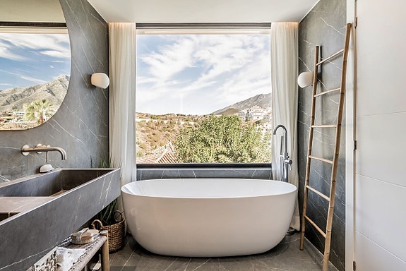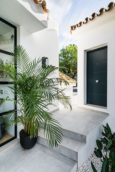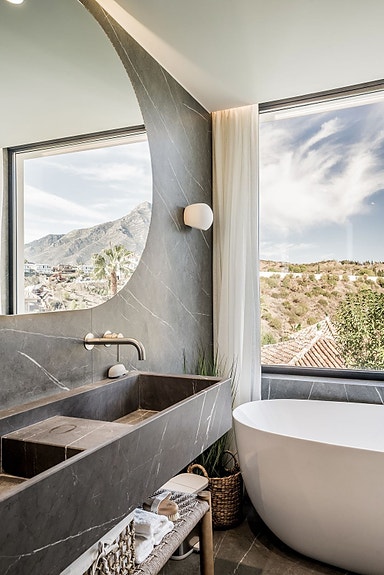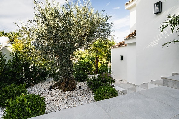 Denne moderne villaen fra 2023 ligger i det prestisjetunge Golf Valley i Nueva Andalucía. Med en unik blanding av moderne arkitektur og tradisjonelle andalusiske elementer, tilbyr eiendommen luksuriøs innendørs- og utendørs livsstil. Villaen har en åpen planløsning, store terrasser med fantastisk utsikt over La Concha-fjellet, golfbanen og havet. Den inkluderer fem soverom, et gjestehus, private uteområder og et integrert svømmebasseng. Den er ideell for de som søker et moderne middelhavsliv med nærhet til golf, strender og alle fasiliteter.