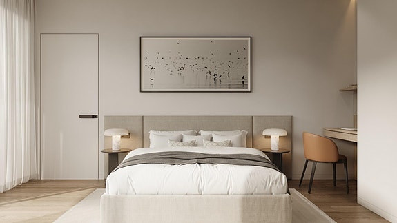 - Leiligheter: Elegante enheter med 2 eller 3 soverom, fra leiligheter i første etasje med privat hage til mellomliggende etasjer med romslige terrasser, samt toppleiligheter med store, åpne terrasser.