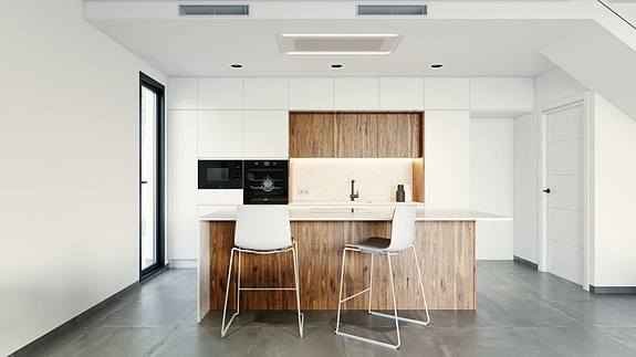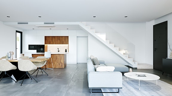 Villaen har alt du trenger, inkludert et privat svømmebasseng, ferdig hage med sprinklersystem, moderne bad, forberedelse for klimaanlegg, kjøkkenutstyr, takterrasse og LED-belysning overalt.I hovedetasjen finner du en lys og luftig stue med terrassedører ut til hagen med basseng, spiseplass, et moderne kjøkken med integrerte hvitevarer, et vaskerom, et soverom og et bad. I andre etasje er hovedsoverommet med garderobe, eget bad og terrasse, samt to store soverom og et ekstra bad. Fra denne etasjen er det en trapp opp til takterrassen, hvor du kan nyte utsikten og solen hele dagen.