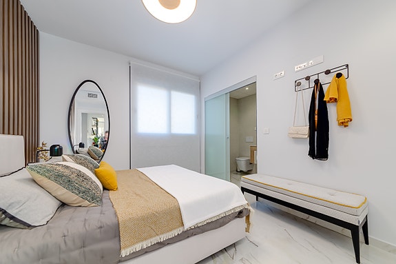 Boligkomplekset består av romslige leiligheter fordelt på 9 blokker med 4 etasjer. Leilighetene har 2-3 soverom og 2 bad, med et utvalg av tre modeller: Leiligheter på bakkeplan, mellometasje med store terrasse eller toppetasje med privat takterrasse. Hver leilighet består av en romslig stue som kombinerer stue, kjøkken og spisestue. De store vinduene åpner ut mot en stor terrasse. Inkludert i prisen er møbler, en parkeringsplass og bod.