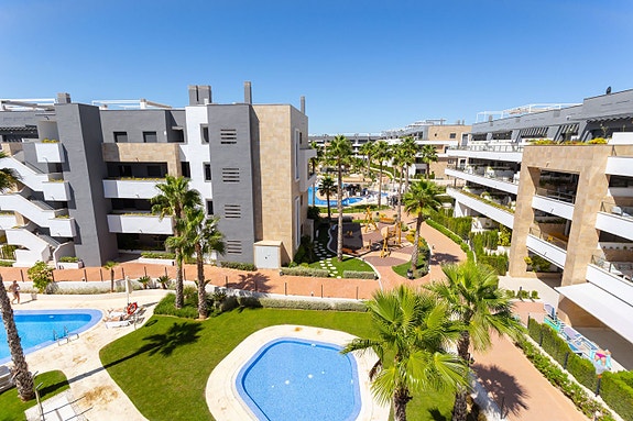Flamenca Village er et lukket og eksklusivt boligområde med flere bassengområder, treningsrom, spa, bar, hager og sosiale møteplasser.Beliggenhet