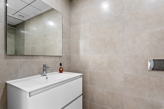 Leiligheten selges med designermøbler, hvitevarer, egen kran med drikkevann på kjøkken, klimaanlegg (varme og kjøling), privat parkeringsplass i underjordisk garasje og privat bod inkludert i prisen. Det er heis fra garasjen opp til leiligheten.