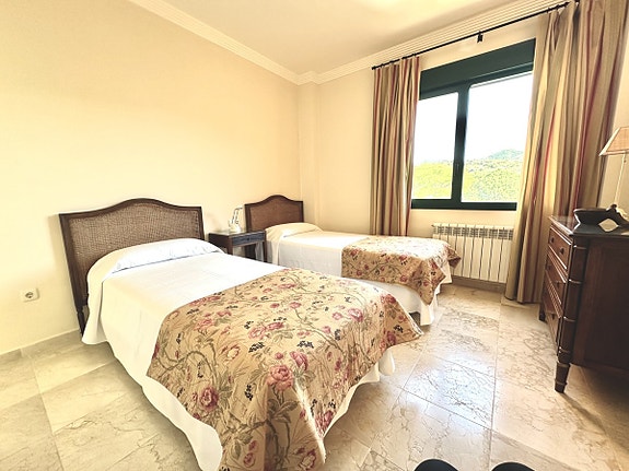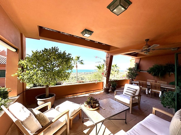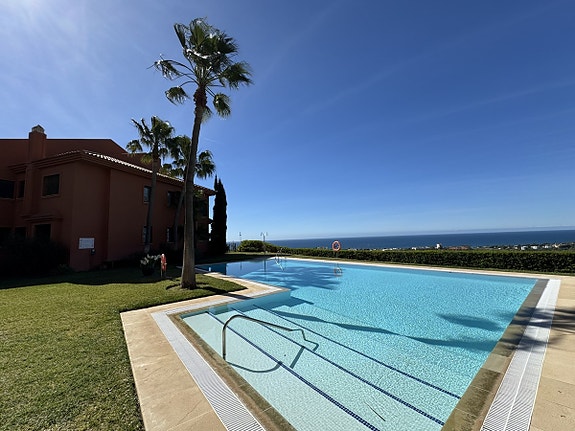 Eksklusiv toppleilighet i El Rosario, Marbella East, med fantastisk utsikt over havet og golfbanen. Fire soverom, alle med egne bad, romslig stue med peis, moderne kjøkken med separat vaskerom og terrasse med panoramautsikt. Boligen har aircondition, oppvarming, doble vinduer og inkluderer både innendørs- og utendørsparkering. Felles hage og svømmebasseng gir en luksuriøs livsstil i et rolig område med kun 18 naboer.