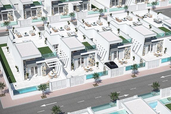 Spania1 har gleden av å presentere dette eksklusive prosjektet av fem villaerpå et plan i sjarmerende Los Alcázares.