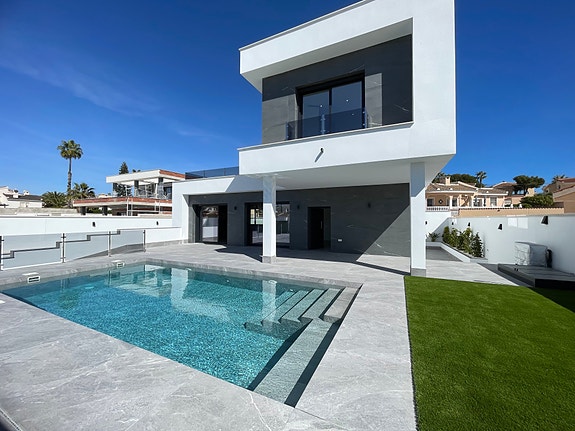 Eksklusiv villa klar for innflytting | 3 soverom og 4 bad | Stor uteplass, basseng og romslig kjeller/garasje