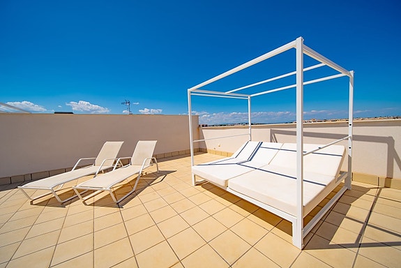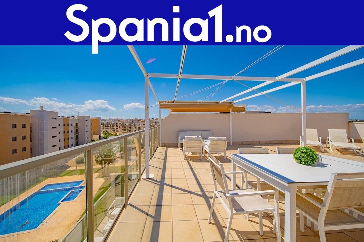 Penthouseleilighet i populære Villamartin Gardens, et privat boligområde med felles basseng og grønne uteområder. Leiligheten selges møblert og med hvitevarer av høy kvalitet, og har vært brukt som feriebolig – den fremstår derfor i utmerket stand.