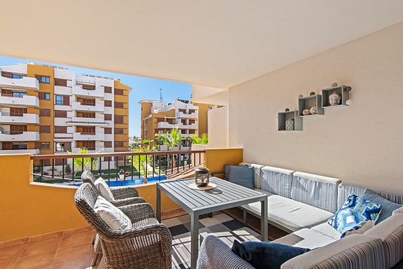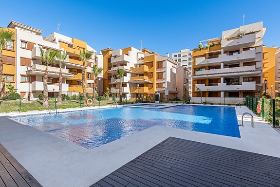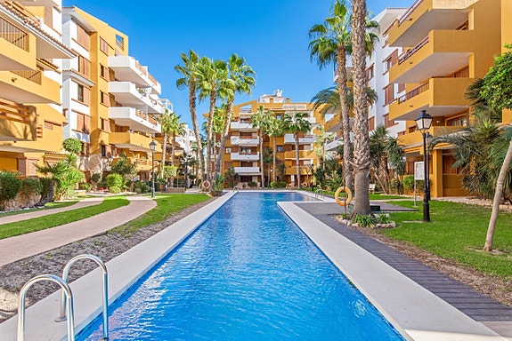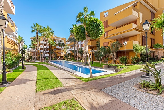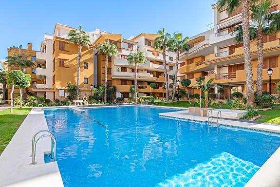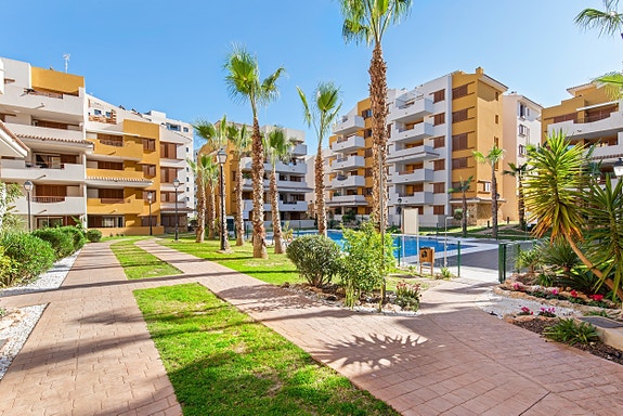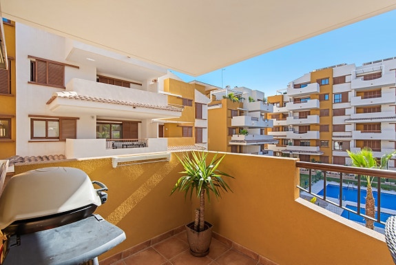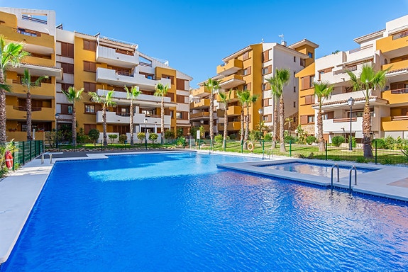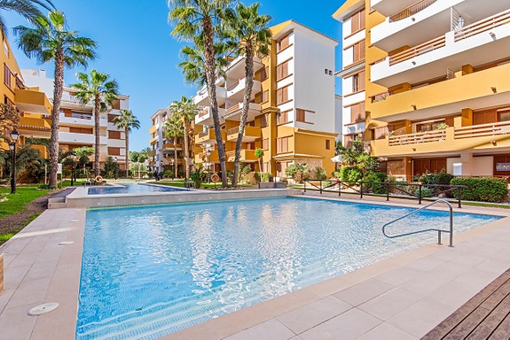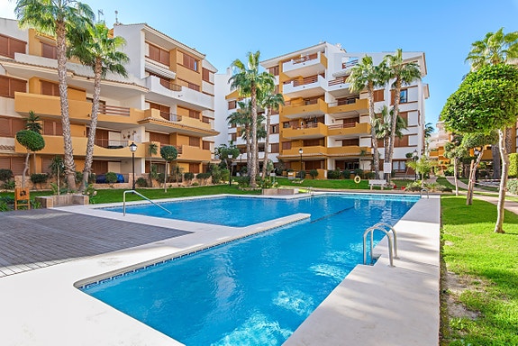 Spania1 har gleden av å presentere en strøken og romslig leilighet på sjøsiden i Punta Prima, kun et steinkast fra havet. Leiligheten ligger i 2.linje, og sandstranden ligger bare 5 minutter å spasere fra leiligheten. Videre er det gangavstand til et stort utvalg av restauranter, matbutikker, kafeer og alt man kan tenke seg av service-tilbud. Det er også en nydelig strandpromenade som er populær for den som ønsker å spasere langs havet - her kan man gå helt inn til Torrevieja by, en miks med promenade og turveier.
