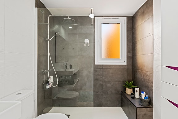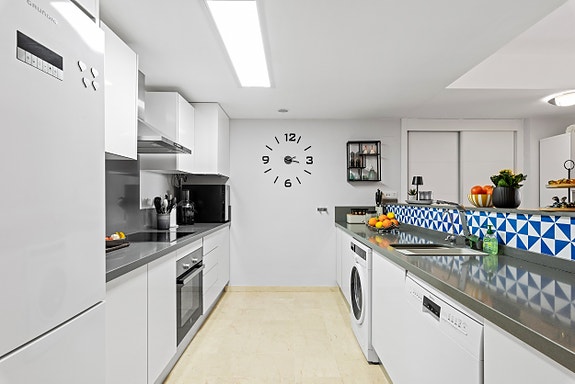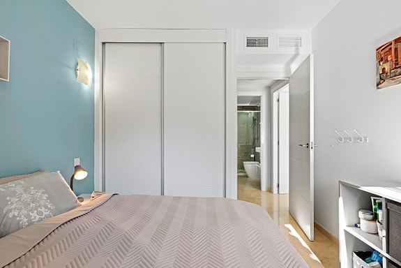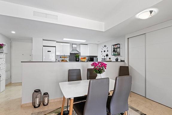 Leiligheten inneholder 2 soverom med innebygde garderober, 2 delikate bad med gulvvarme, romslig stue med åpen kjøkkenløsning, samt et flott og solrik terrasse med utsikt over bassengområdet. Tilhørende fellesområdet har man 3 store svømmebasseng og pene grøntområder. Det er 24/7 vakthold og såkalt "gated community". Det følger med privat parkeringsplass og bod i det underjordiske garasjeanlegget.