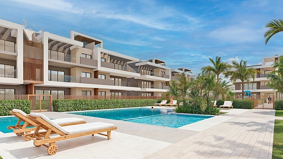 Opplev det beste av kystlivet med dette imponerende nybyggprosjektet, kun 150 meter fra stranden Las Higuericas i Torre de la Horadada.