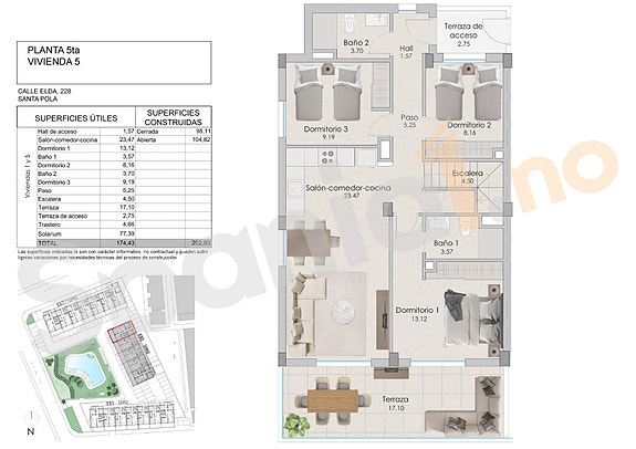 Boligkomplekset består av leiligheter i det ettertraktede området Santa Pola, med 2 eller 3 soverom og 2 bad! Du har muligheten til å velge mellom leiligheter på bakkeplan, i mellometasje og penthouseleiligheter med private takterrasser og fantastisk havutsikt. Komplekset består av tre blokker med totalt 95 boliger. Fra første til fjerde etasje tilbys boliger med 2 og 3 soverom. Toppleilighetene har egne private solterrasser med egen adkomst direkte fra boligen til taket.