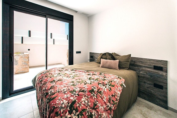 Denne moderne og elegante leiligheten med 4 soverom og 3 bad ligger i et eksklusivt boligområde rett ved flere av Costa Blancas beste golfbaner. Boligen har åpen stue-/kjøkkenløsning, store rom og privat terrasse på 19 m² med utsikt mot grønne fellesområder. Ett av soverommene har eget bad (en-suite).