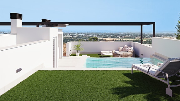Spania1 har gleden av å presentere et fantastisk prosjekt bestående av totalt 8 moderne leiligheter, fire leiligheter på bakkeplan med store hager og fire toppetasjer med balkonger og solrike takterrasser med vakker utsikt.