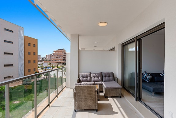 Fra leiligheten er det en kort kjøretur til flere populære strender i området. La Zenia stranden er den nærmeste, her kan du også sykle til stranden på ca 10 minutter.