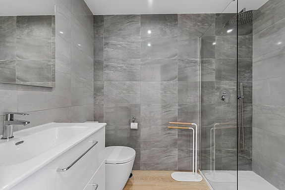 Leiligheten har også eget vaskerom med utgang til terrasse. Det følger også med parkeringsplass og bod i egen garasje. Her er det også muligheter for å installere elbillader.