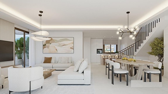 New Golden Mile ligger ved Middelhavskysten, og er kjent for sine vakre strender og fantastiske klima. Det er et ideelt sted for de som ønsker å nyte solen og det behagelige været året rundt. New Golden Mile tilbyr et bredt spekter av fasiliteter og aktiviteter for beboere og besøkende. Dette inkluderer førsteklasses golfbaner, eksklusive strandklubber, shoppingområder, restauranter og barer. Området har også gode muligheter for vannsport og andre utendørsaktiviteter.Beliggenhet og avstander: