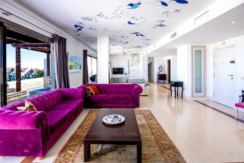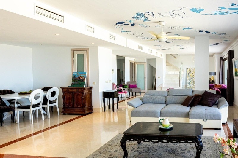 Denne unike penthouse-duplexen ligger i Mijas Costa og består av to sammenhengende leiligheter som er slått sammen til én romslig og gjennomført bolig. Resultatet er en sjelden kombinasjon av store innvendige arealer, gode uteplasser og helt fri havutsikt.