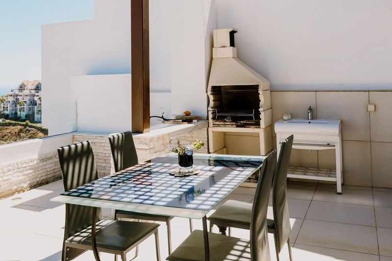 Det som virkelig skiller denne boligen fra andre i området, er den åpne og uforstyrrede utsikten mot Middelhavet. Ifølge eier er dette den eneste leiligheten i området med full horisontlinje og fri havutsikt, uten fremtidig innsyn eller bebyggelse foran.