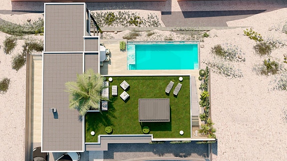 Nydelig moderne villa med takterrasse | 3 soverom og 2 bad | Stor uteplass med basseng