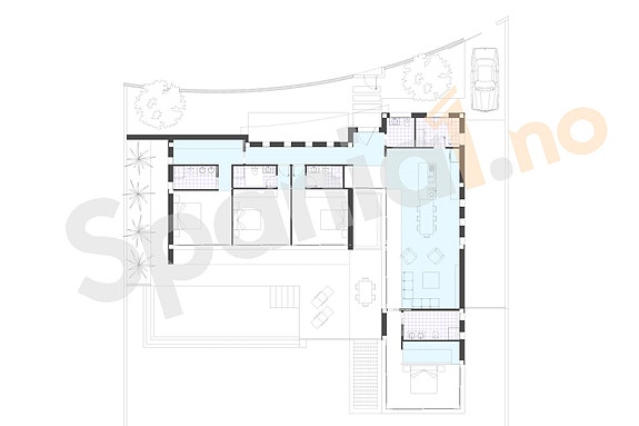 Eksklusiv moderne villa | Innredet underetasje | Stor uteplass med basseng | 4 soverom og 3 bad | Takterrasse