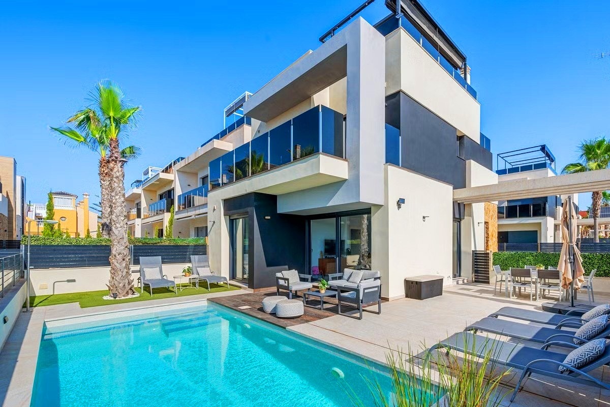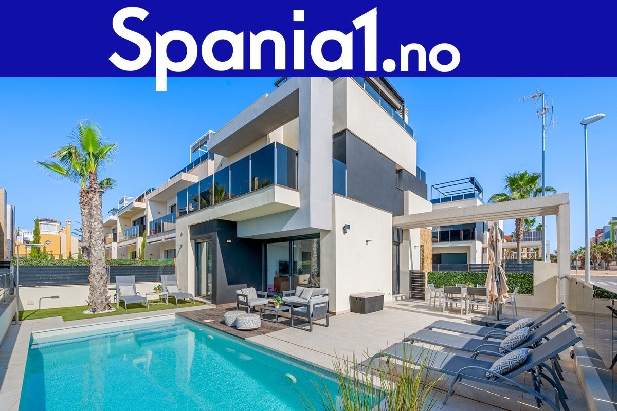 Velkommen til denne moderne og stilrene villaen, perfekt plassert i det ettertraktede området Lomas de Cabo Roig – kun få minutter fra stranden, golfbaner og et bredt utvalg av servicetilbud.