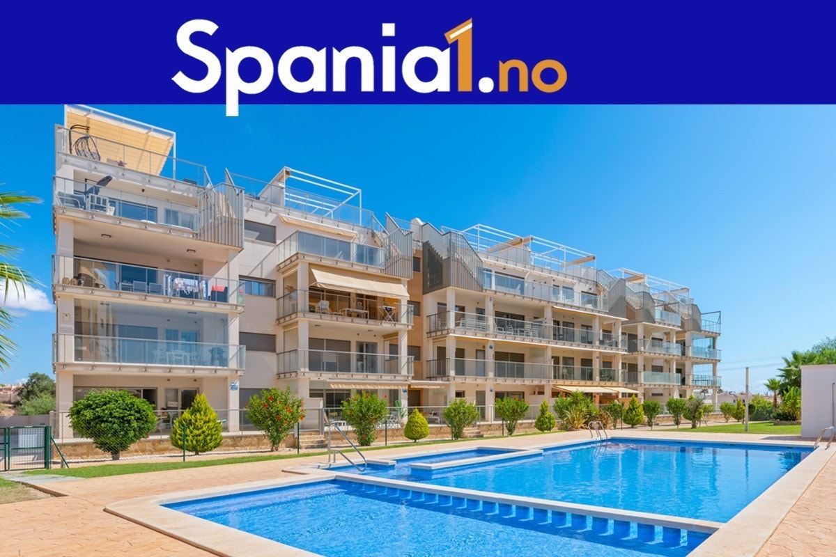 Spania1 har gleden av å presentere en moderne og strøken leilighet i 2.etg med 2 soverom, 2 delikate bad, romslig stue med åpen kjøkkenløsning, samt stor terrasse utenfor stuen. Leiligheten er godt utstyrt og selges med møbler inkludert i prisen. Sørvendt med ideelle solforhold. Det er heis i bygget og underjordisk garasje med parkeringsplass og privat bod. Du har gangavstand til et godt utvalg av restauranter, kafeer og kjøpesenteret i La Zenia. Ønsker du en tur på stranden kan man sykle ned på cirka 15 minutter. Ellers er det verdt å nevne at det er tre 18-hulls golfbaner like i nærheten.