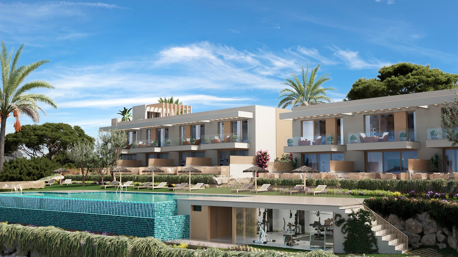 Boligene leveres med moderne kjøkken, store vindusflater, åpne oppholdsrom og flotte uteplasser – tilpasset det solrike klimaet.
