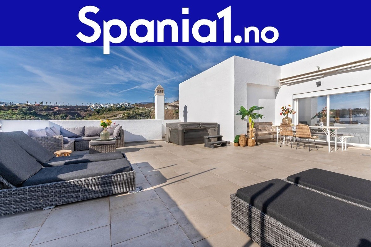 På New Golden Mile i Estepona finner du denne innflytningsklare duplex-penthouse med moderne komfort, store uteplasser og fantastisk utsikt til fjell og landskap.