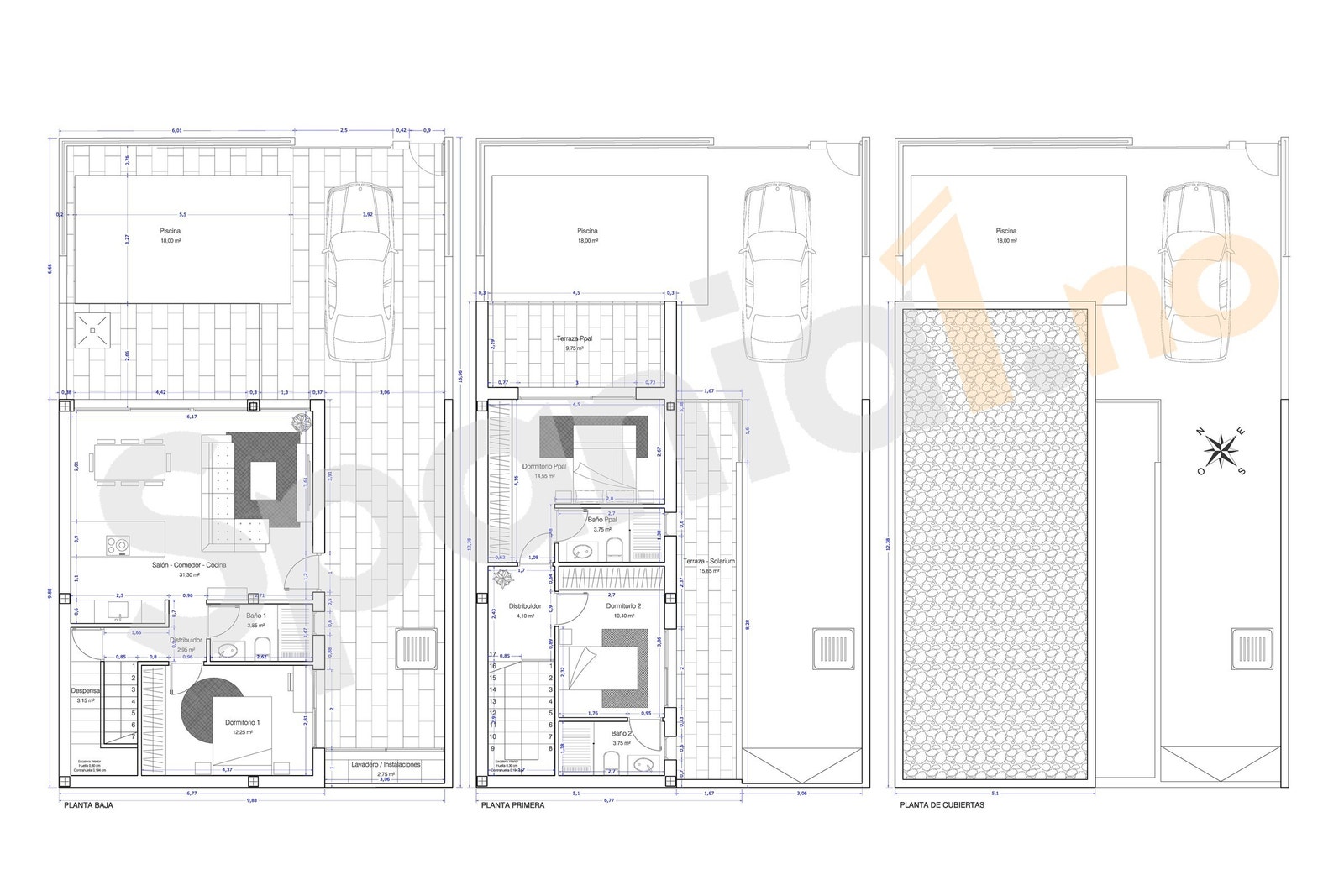 Velkommen til fase 2 av et eksklusivt prosjekt i San Pedro del Pinatar. Her bygges 12 moderne villaer i stilrent, minimalistisk design med høy standard og privatliv i fokus. Hver bolig byr på romslige uteområder, privat basseng, og gjennomtenkte løsninger – perfekt for deg som ønsker en kombinasjon av komfort, eleganse og nærhet til kysten.