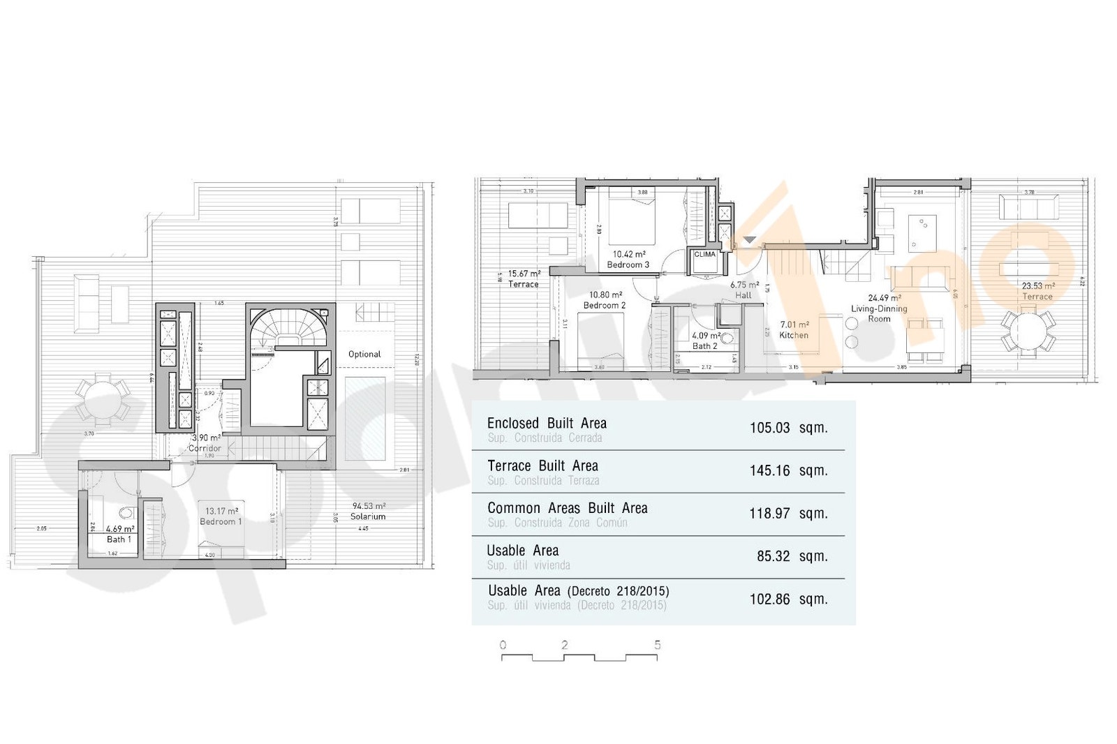 Alle leilighetene har østvendt orientering, som gir godt med naturlig lys gjennom dagen og lavt energiforbruk. Mange av boligene har i tillegg en vestvendt terrasse med utsikt fra soverommene – perfekt for å nyte solnedgangen over Middelhavet.