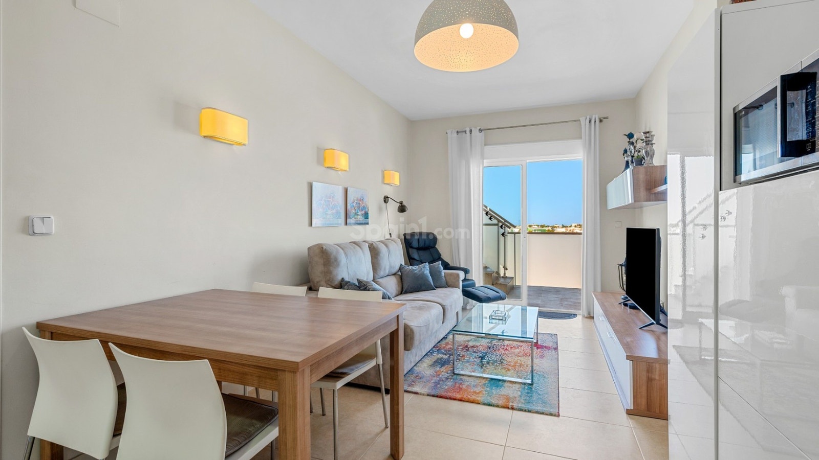 Spania1 presenterer stolt denne flotte toppleiligheten med fantastisk utsikt mot både fjell og hav – perfekt beliggende kun 250 meter fra stranden i Santiago de la Ribera.