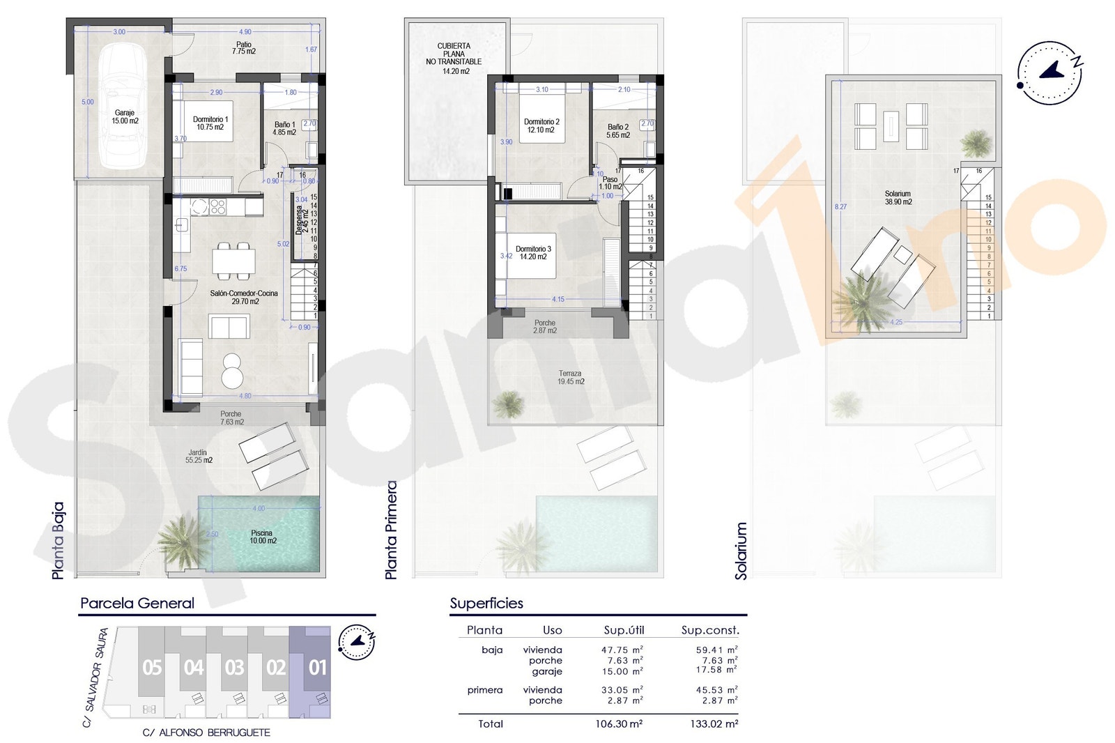 Boligene ligger i et rolig og etablert område nær idrettsanlegg, gangavstand til sentrum og kun 3,5 km fra strendene ved Mar Menor og Middelhavet – perfekt kombinasjon av komfort, beliggenhet og middelhavsstil.