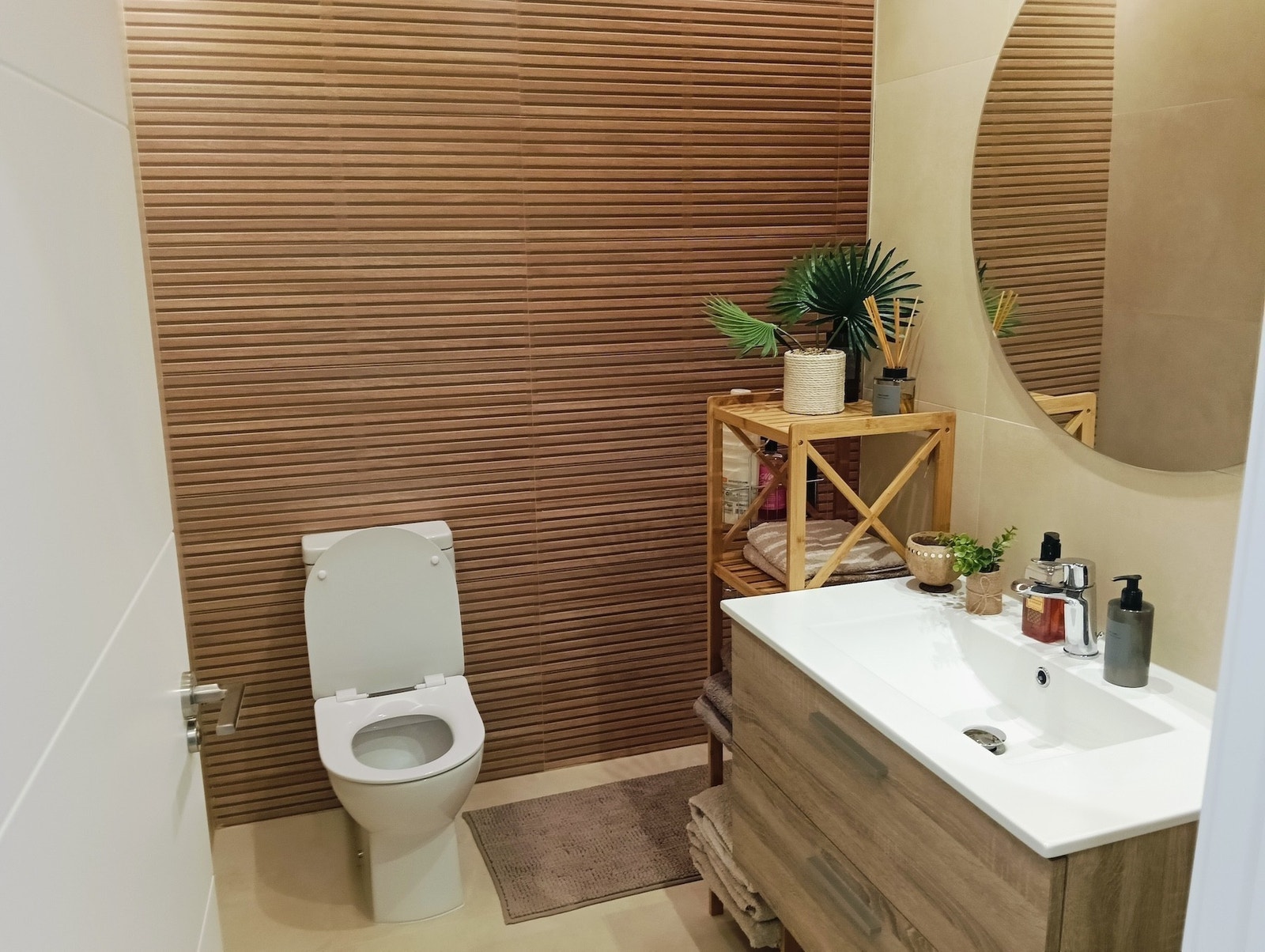 Villaene har en smart og funksjonell planløsning over to etasjer med tre doble soverom – hvorav ett ligger i første etasje – to komplette bad og et gjestetoalett. Åpen stue- og kjøkkenløsning gir god romfølelse og naturlig lysinnslipp. Fra stuen er det direkte utgang til hage med privat basseng og parkeringsplass på tomten. I toppetasjen finner du to åpne terrasser og en romslig takterrasse, perfekt for sol hele dagen.