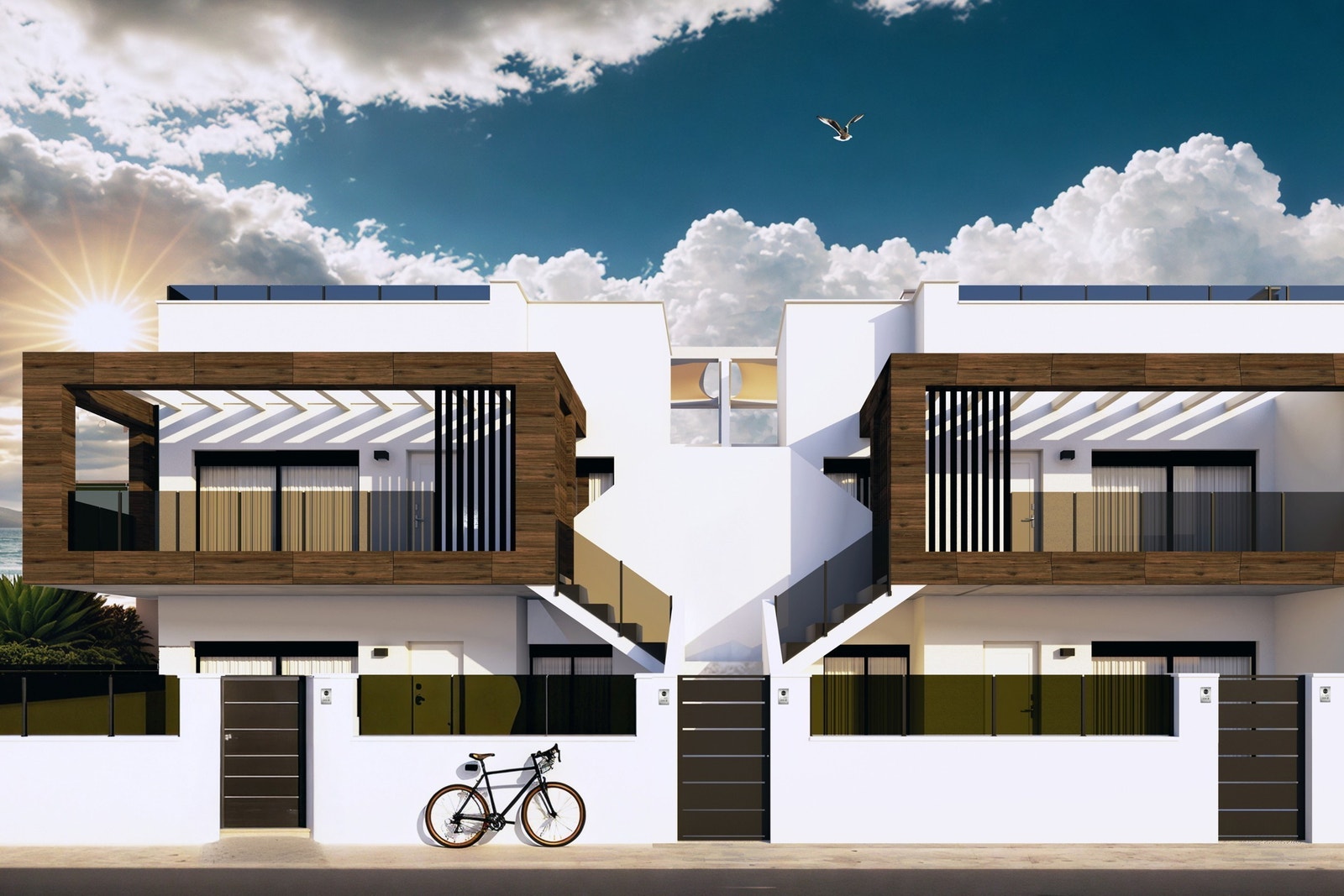 Moderne boligkompleks med flotte bungalower fordelt på to etasjer, kun 2 km fra stranden og rett ved et fredelig naturreservat. Velg mellom leilighet i første etasje med privat hage eller i toppetasjen med stor takterrasse.