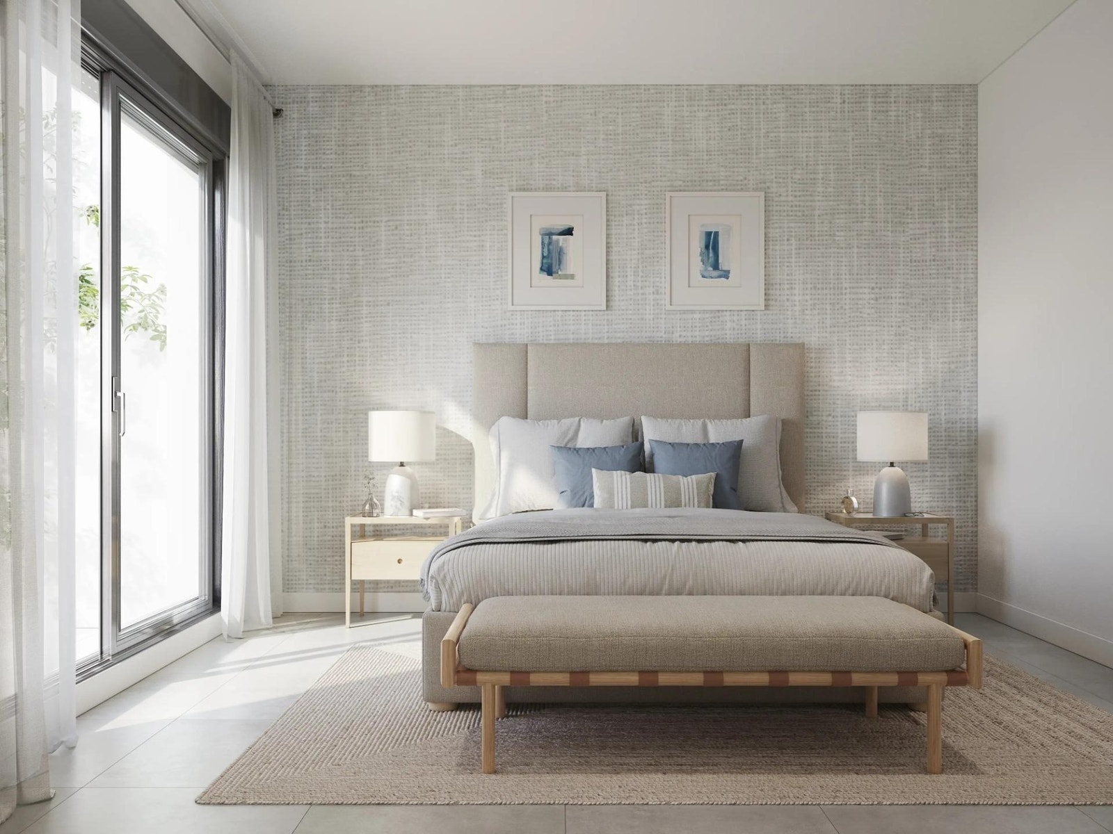 Leiligheten har 3 doble soverom og 2 bad, moderne design, store vindusflater og en romslig terrasse. Den leveres med fullt utstyrt kjøkken med hvitevarer, klimaanlegg, elektriske persienner på soverom, samt parkeringsplass og bod.