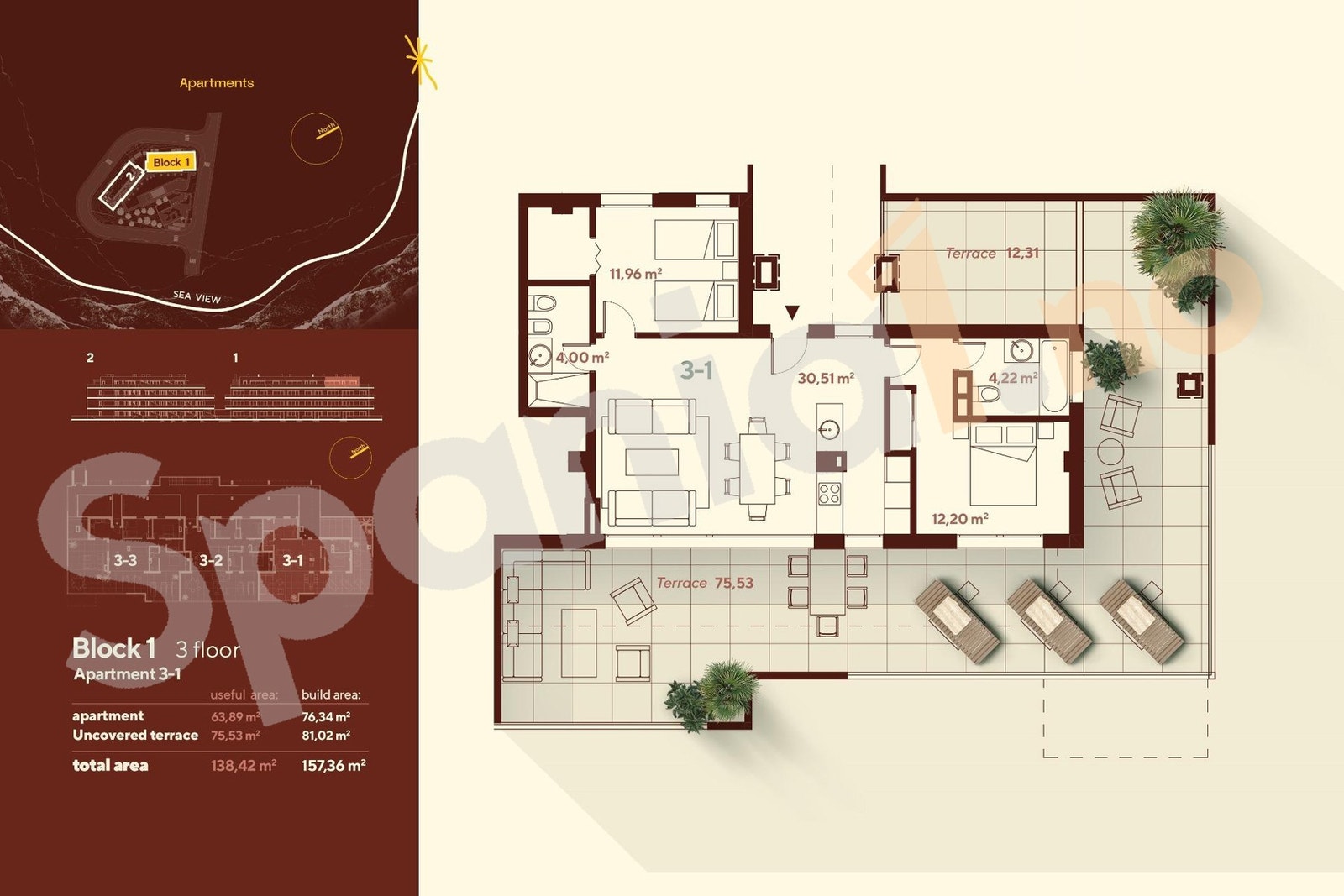 Prosjektet er fordelt på to blokker og du kan velge mellom 2 eller 3 soverom. Alle leilighetene har parkeringsplass og bod, og noen leilighetene har fantastisk havutsikt.