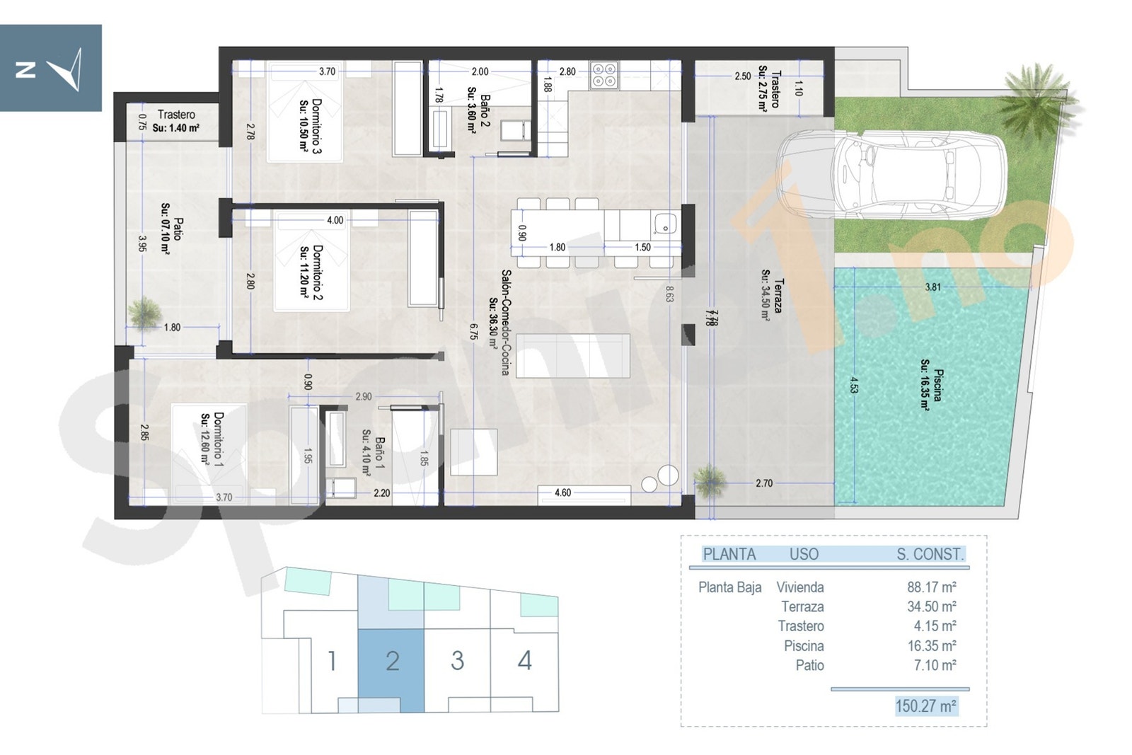 Spania1 har gleden av å presentere et helt nytt og vakkert prosjekt i San Pedro del Pinatar, på Costa Blanca sør. Prosjektet ligger i kort avstand til sentrum med et stort utvalg av daglige fasiliteter, som supermarkeder, butikker, barer og restauranter, banker og et medisinsk senter. De vakre sandstrendene kan nås på bare få minutter med bil eller en rolig 10-minutters sykkeltur.