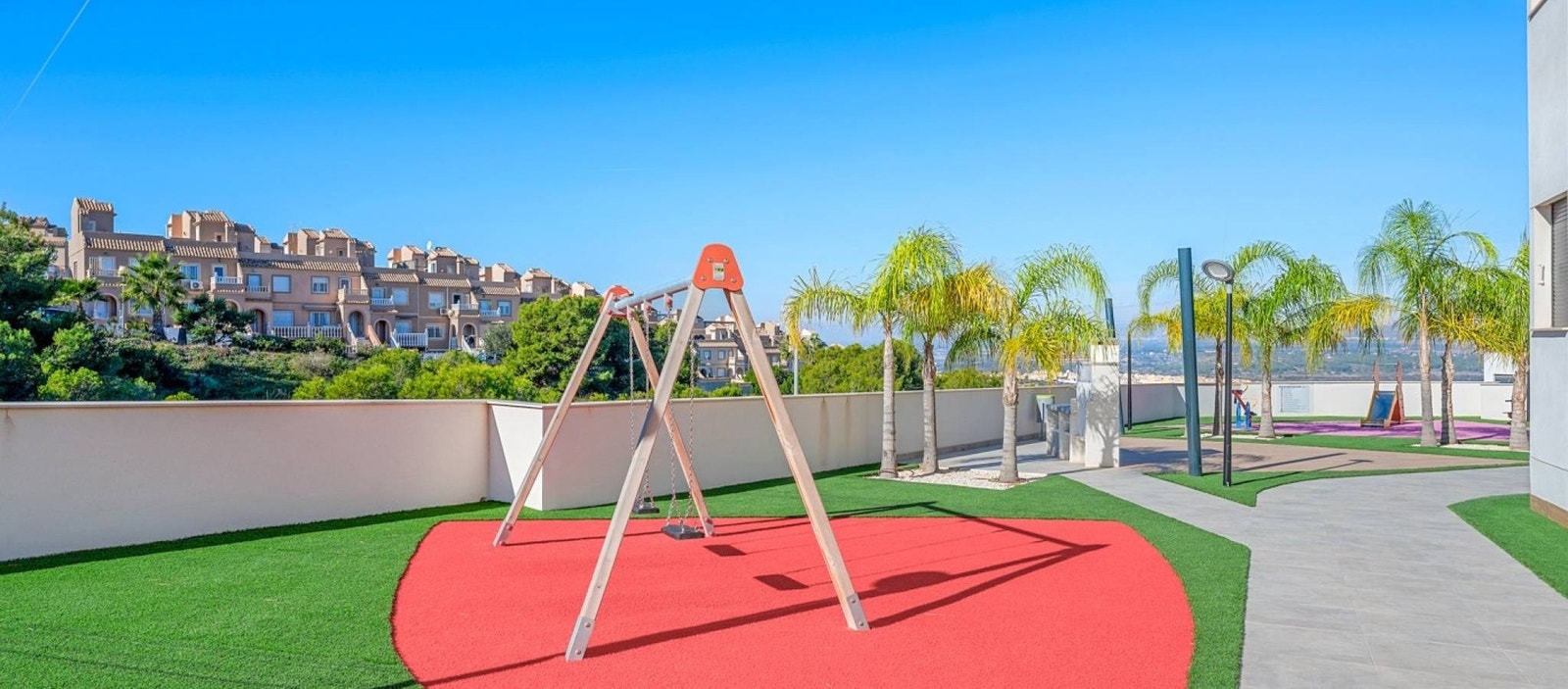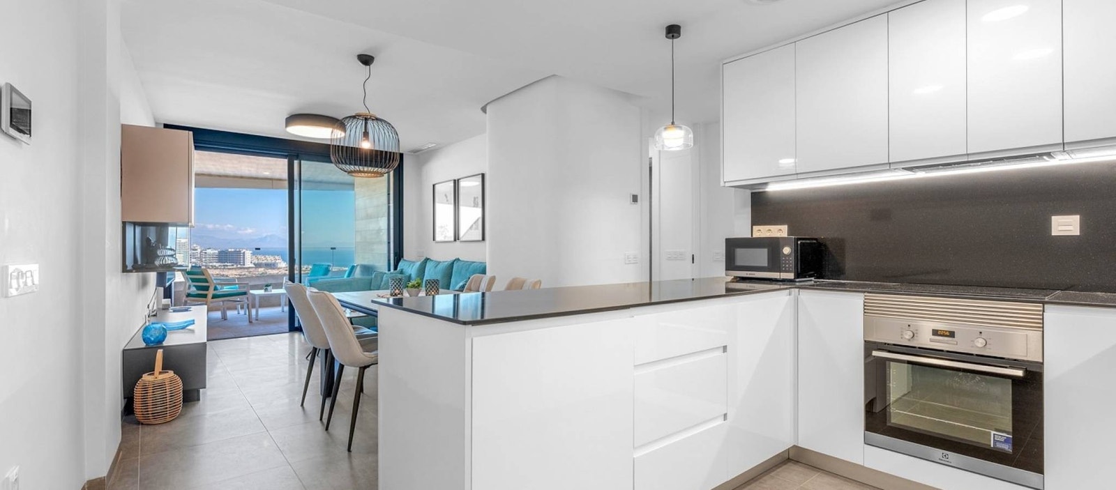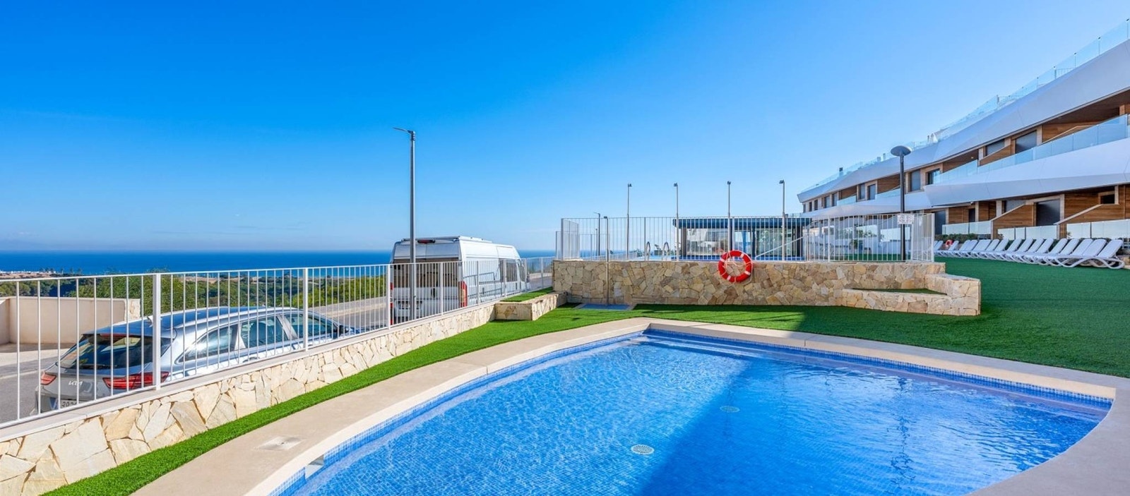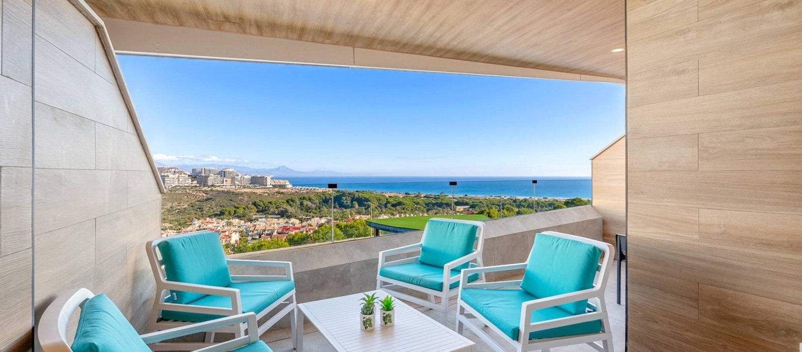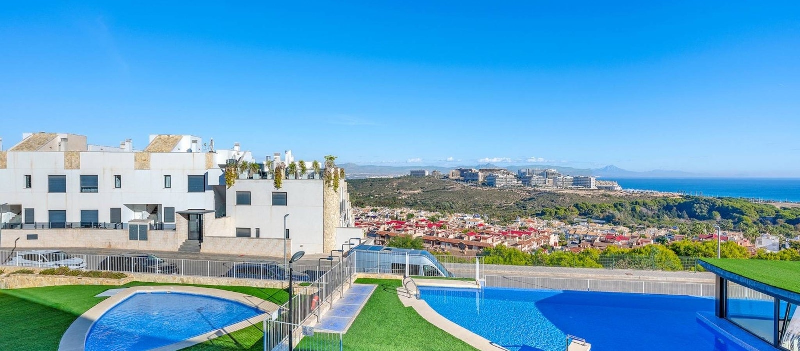 Beliggenheten er et stort pluss. Gran Alacant er kjent for sin flotte kystlinje, naturparker og avslappede middelhavsstil. Carabassi-stranden med sine sanddyner og krystallklare vann ligger kun få minutter unna. I nærområdet finner du restauranter, kaféer, supermarkeder og viktig infrastruktur, samt gode bussforbindelser til Alicante, Santa Pola og flyplassen. Den høye beliggenheten sikrer åpen sjøutsikt samtidig som du bor nær alt Gran Alacant har å tilby – fra turstier og sykkelruter til vannsport og lokale markeder.