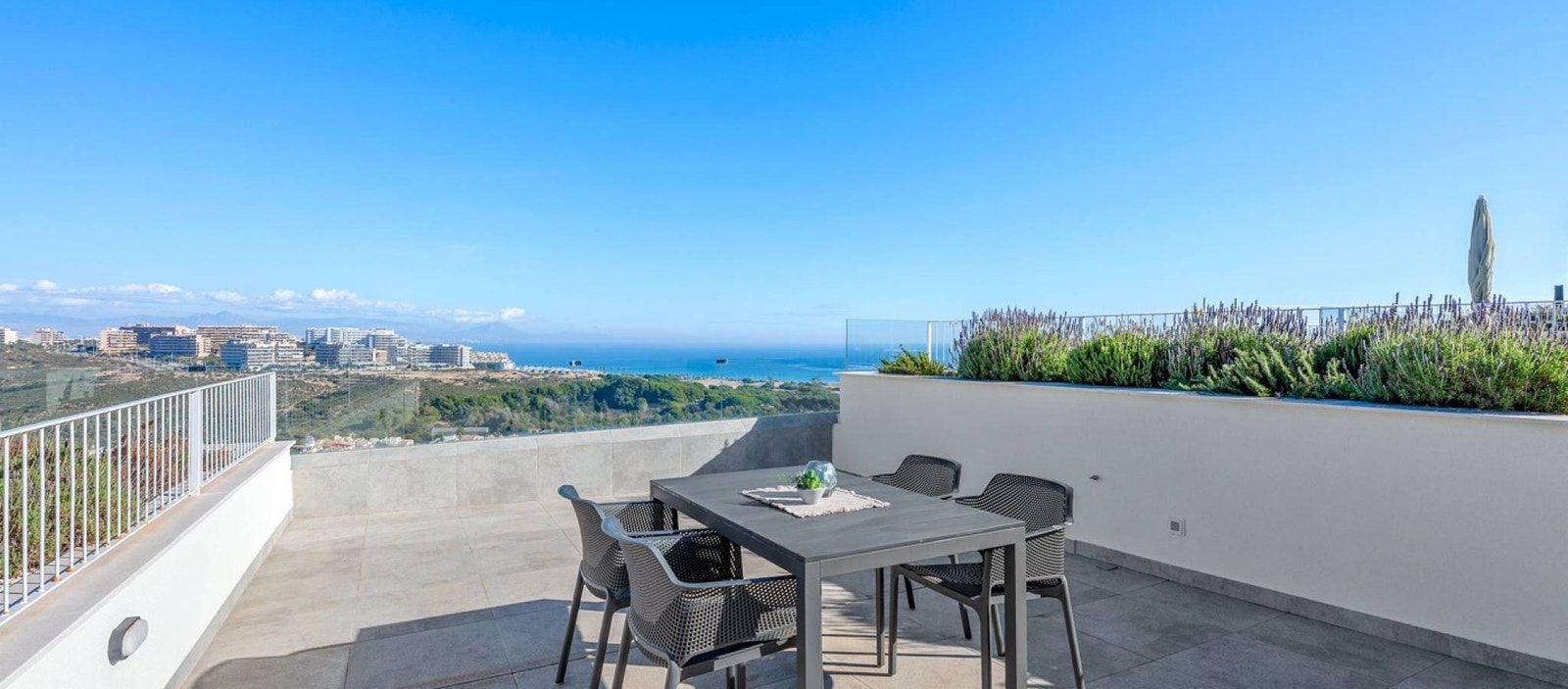 Et av høydepunktene er den store takterrassen som byr på sol fra morgen til kveld og en av de beste utsiktene i Gran Alacant – perfekt for avslapning og sosiale sammenkomster. I tillegg følger privat bod og parkeringsplass som gir ekstra komfort i hverdagen.