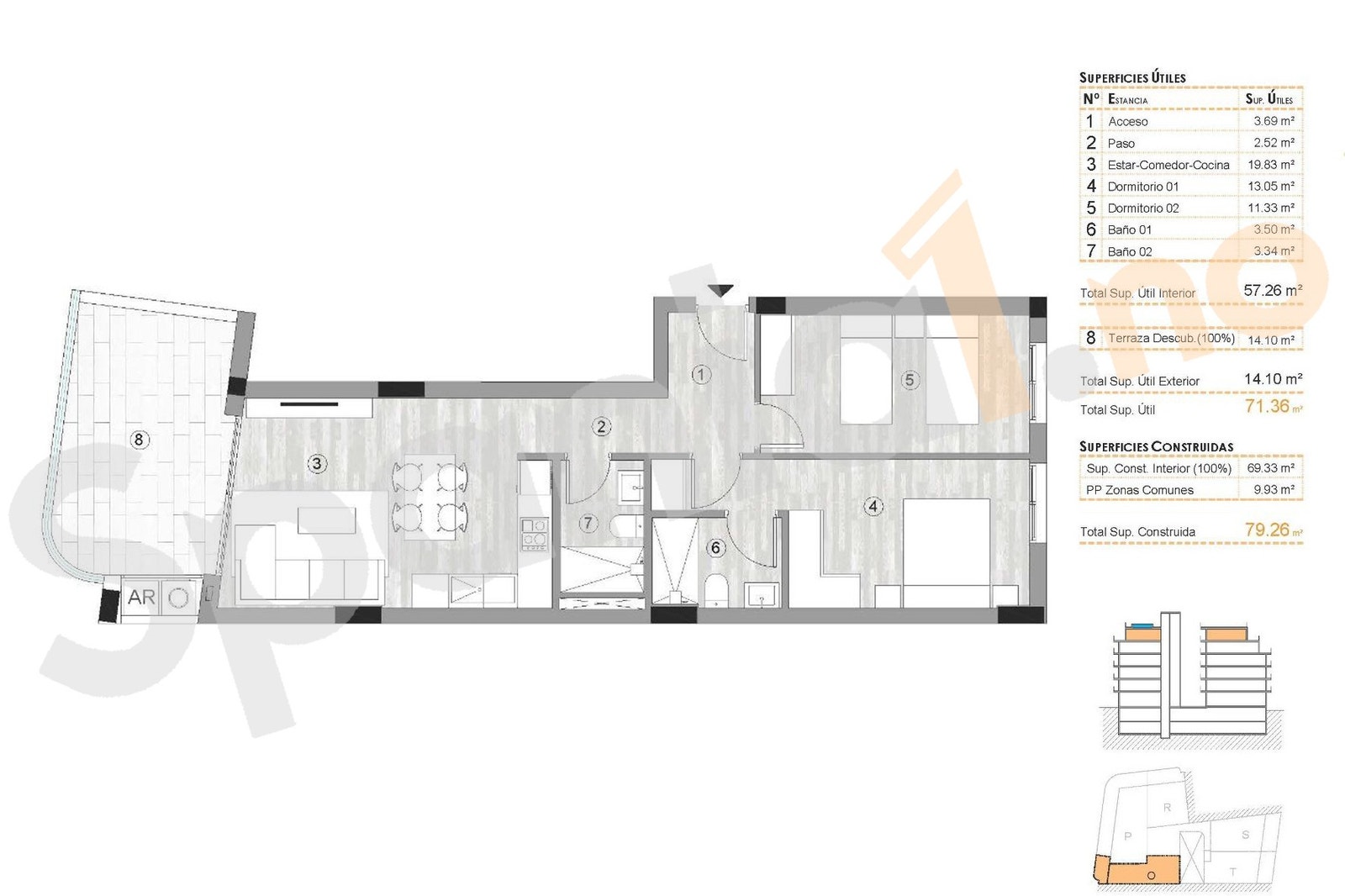Nytt boligprosjekt i hjertet av Torrevieja, kun 400 meter fra Playa del Cura. Leiligheter med 2 og 3 soverom, store terrasser, tilgang til gym, takterrasse med sauna og minipool, og mulighet for parkering og bod.