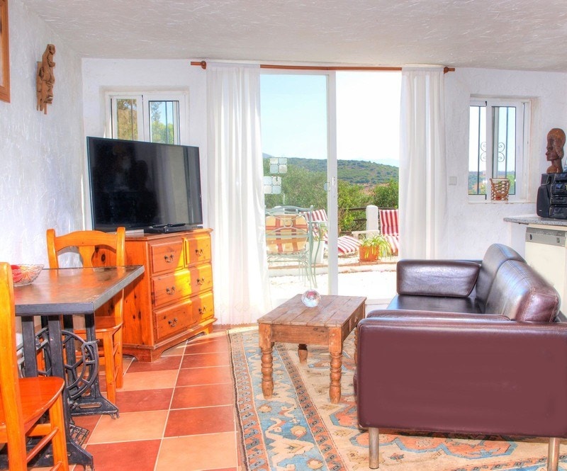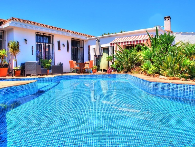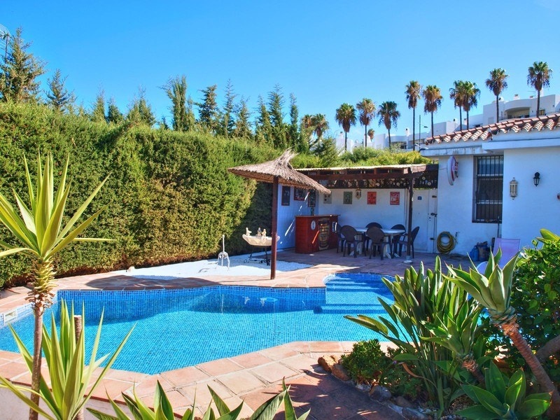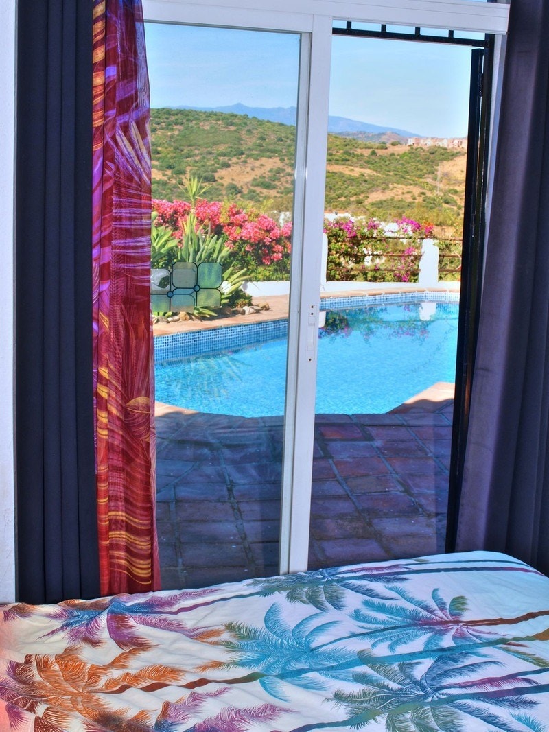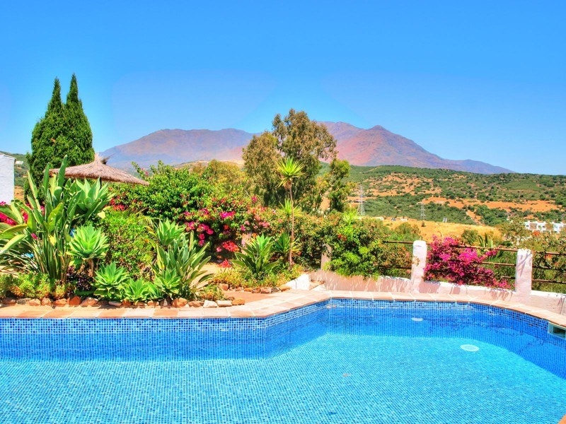 Denne sjeldne frontline golf-villaen ligger i et attraktivt boligområde i Estepona, med panoramautsikt mot både fjell, hav og golfbanen. Eiendommen består av to boliger i én: en romslig hovedvilla med 3 soverom og privat basseng, samt en helt separat 1-soveroms leilighet med egen inngang og egen hage – ideelt for gjester, familie eller som en potensiell utleiedel.