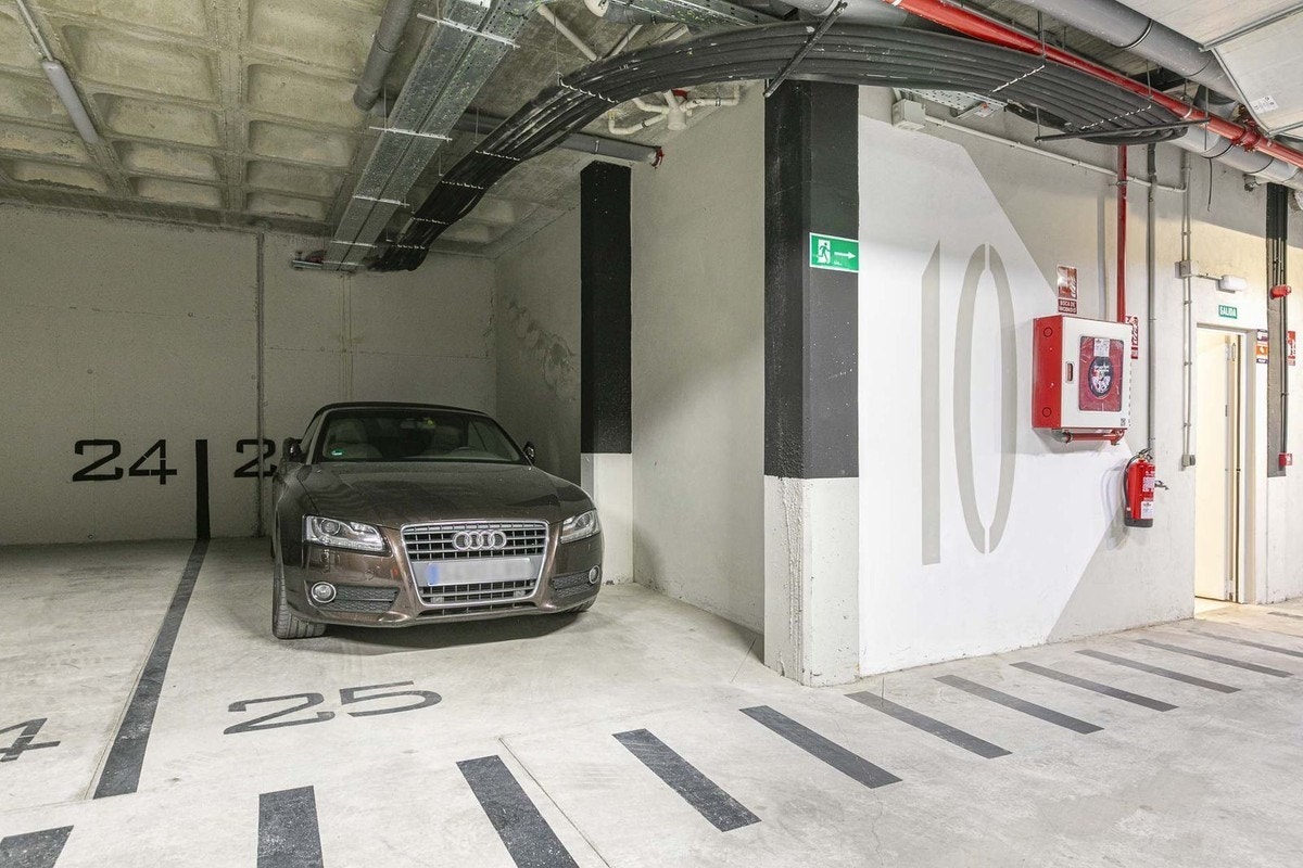 Denne lyse og moderne 3-soveroms dupleksen har en åpen kjøkken- og stueløsning med store gulv-til-tak-vinduer som slipper inn rikelig med naturlig lys.