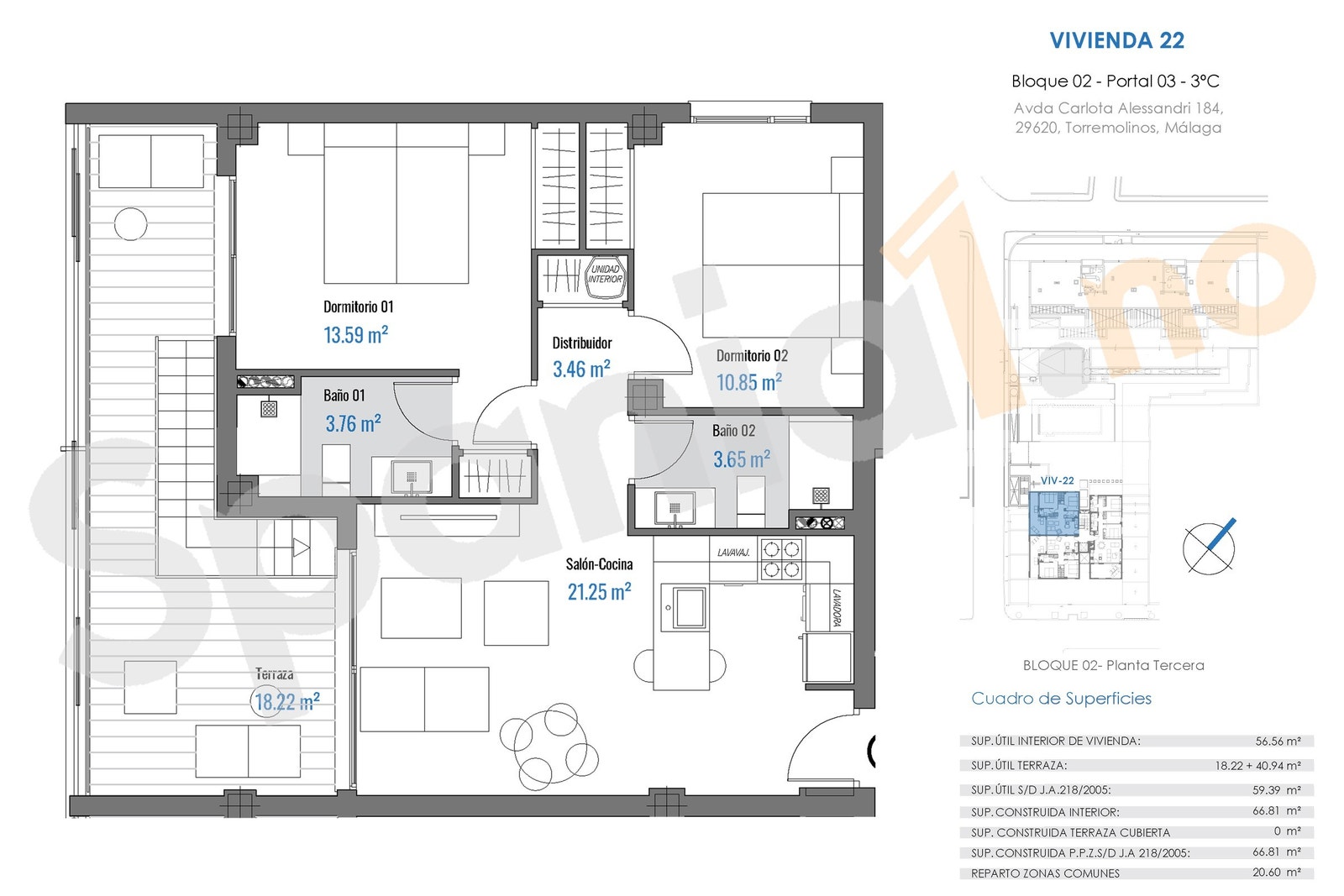 Prosjektet består av leiligheter og toppleiligheter med 2 og 3 soverom, alle med store terrasser og lyse planløsninger. Det er nå kun to penthouse-leiligheter ledige, priset til 570.000 og 590.000 €. Denne annonsen gjelder penthouse-enheten til 590.000 €.
