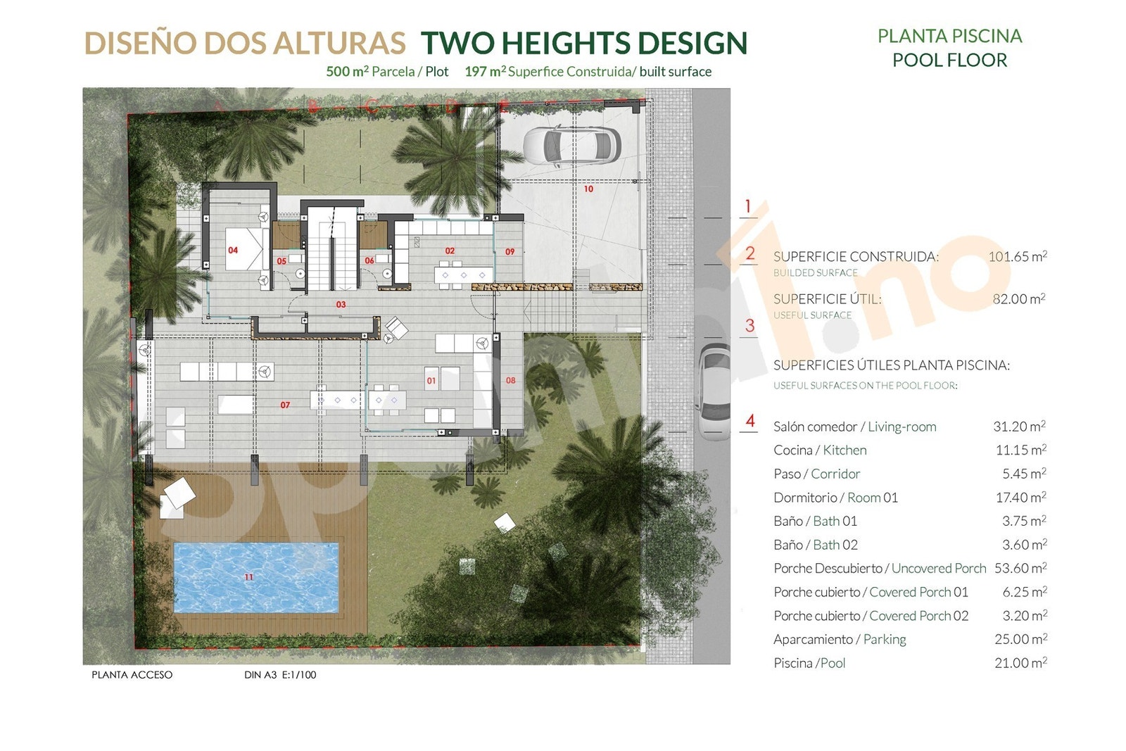 Villaen består av 4 soverom og 4 bad, og leveres komplett utstyrt. Boligen er bygget på en stor tomt som gir gode utearealer, privat hage og eget svømmebasseng. Hjemmet er utstyrt med aerotermisk system og klimaanlegg for komfort året rundt.