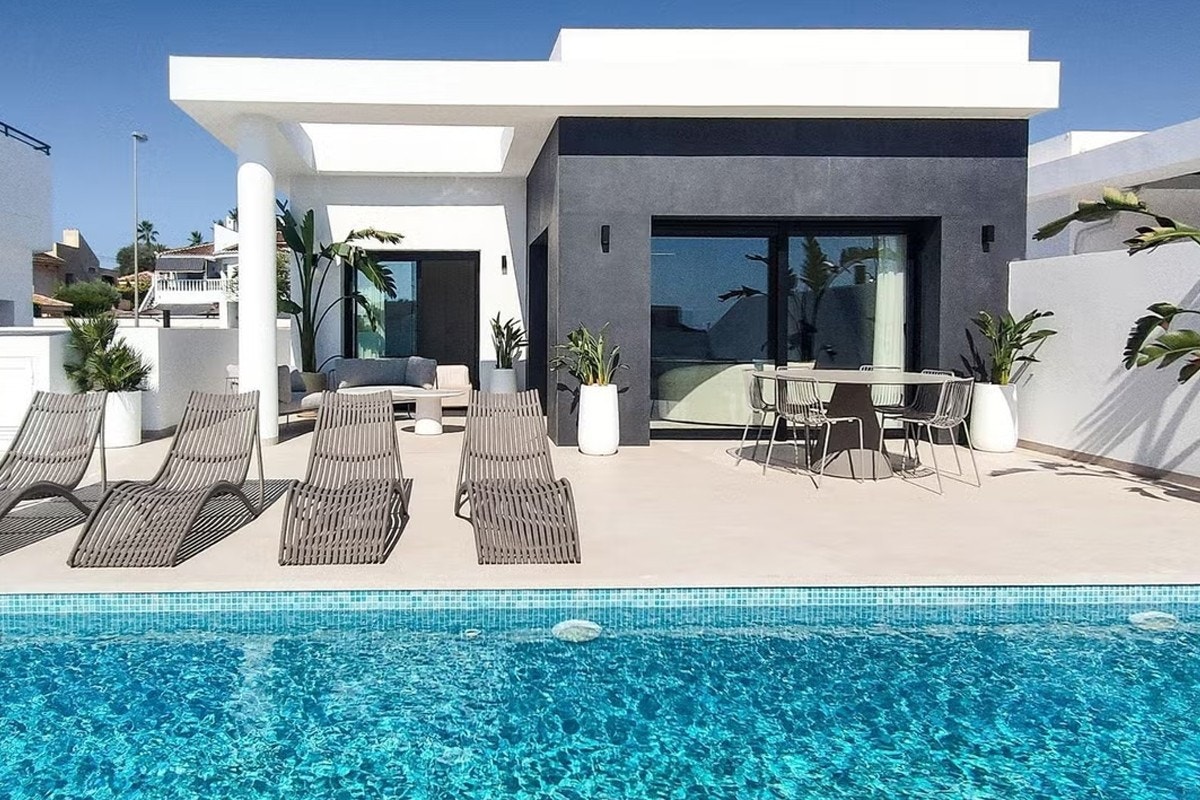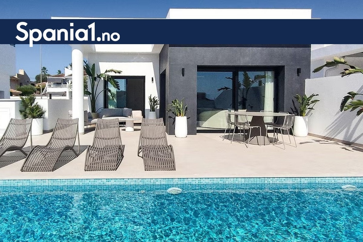 Spania1 presenterer en ny og elegant villa i det ettertraktede området Ciudad Quesada på Costa Blanca. Boligen ligger på en tomt på ca. 300 m² med vakkert opparbeidet hage og privat basseng på 4 x 10 meter – en perfekt kombinasjon av moderne arkitektur, natur og komfort.