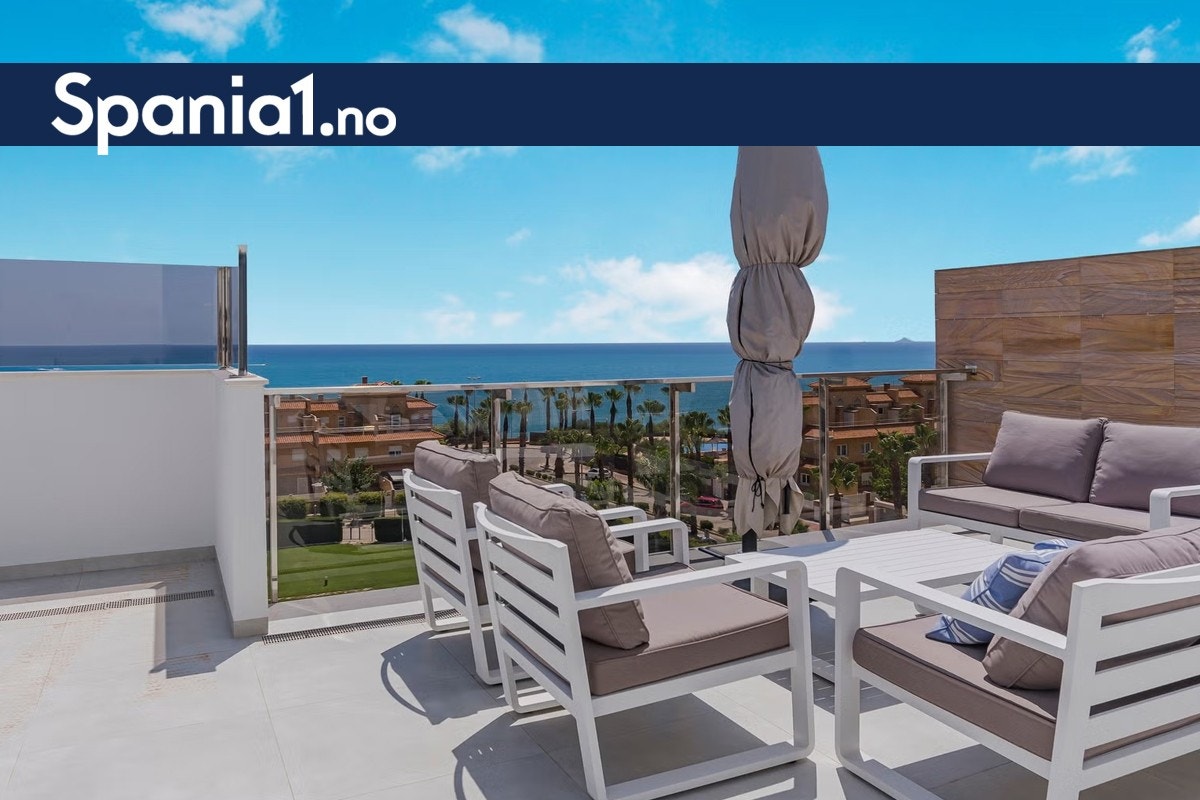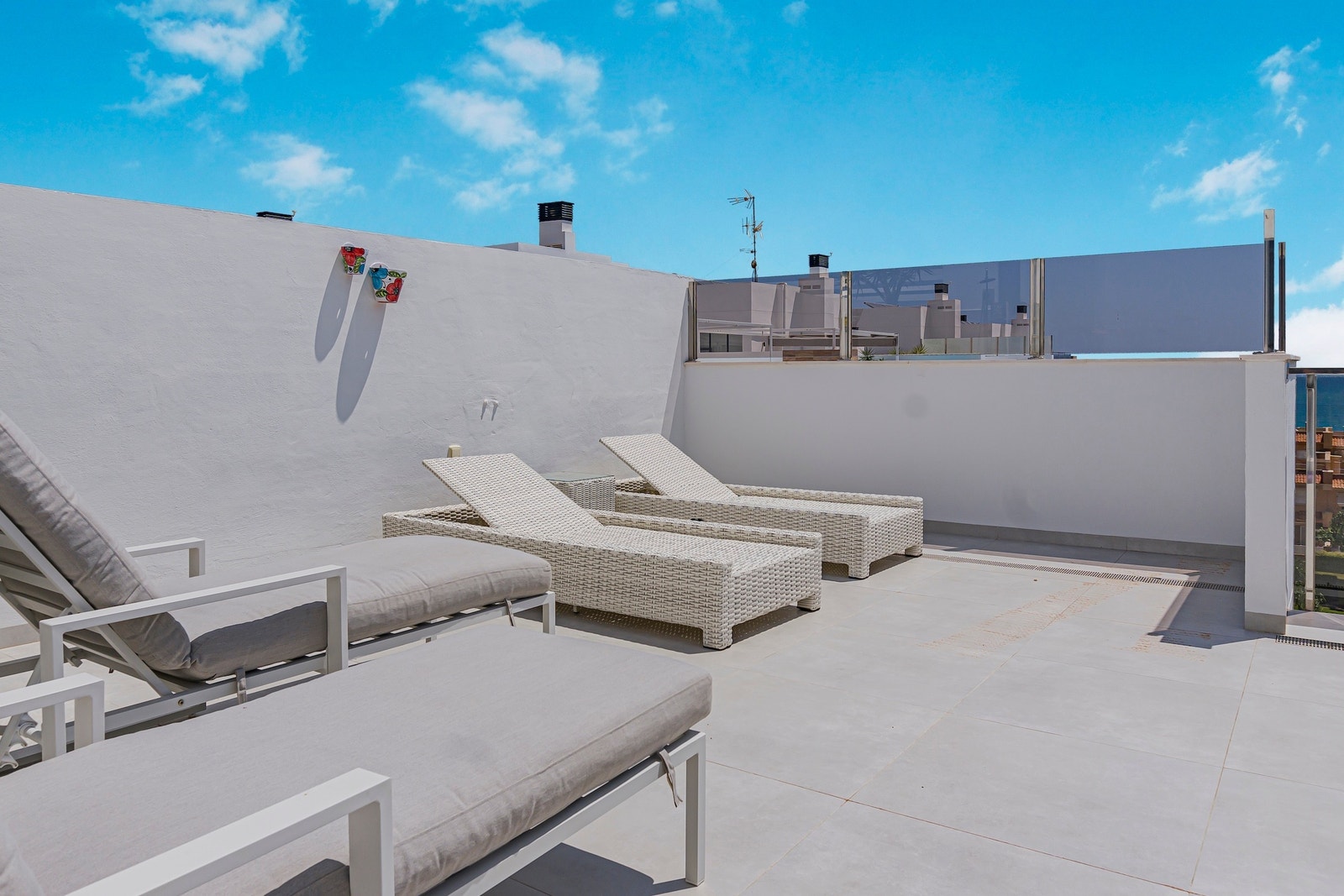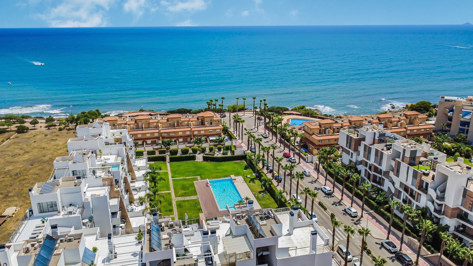 I ettertraktede Cabo Roig, kun et kort gangavstand fra strand, restauranter, marina og servicetilbud, ligger denne toppleiligheten med store utearealer og utsikt mot Middelhavet. Området regnes som et av de mest etablerte og populære langs Orihuela Costa, med et godt miljø året rundt og nærhet til alt man trenger i hverdagen og i ferier.