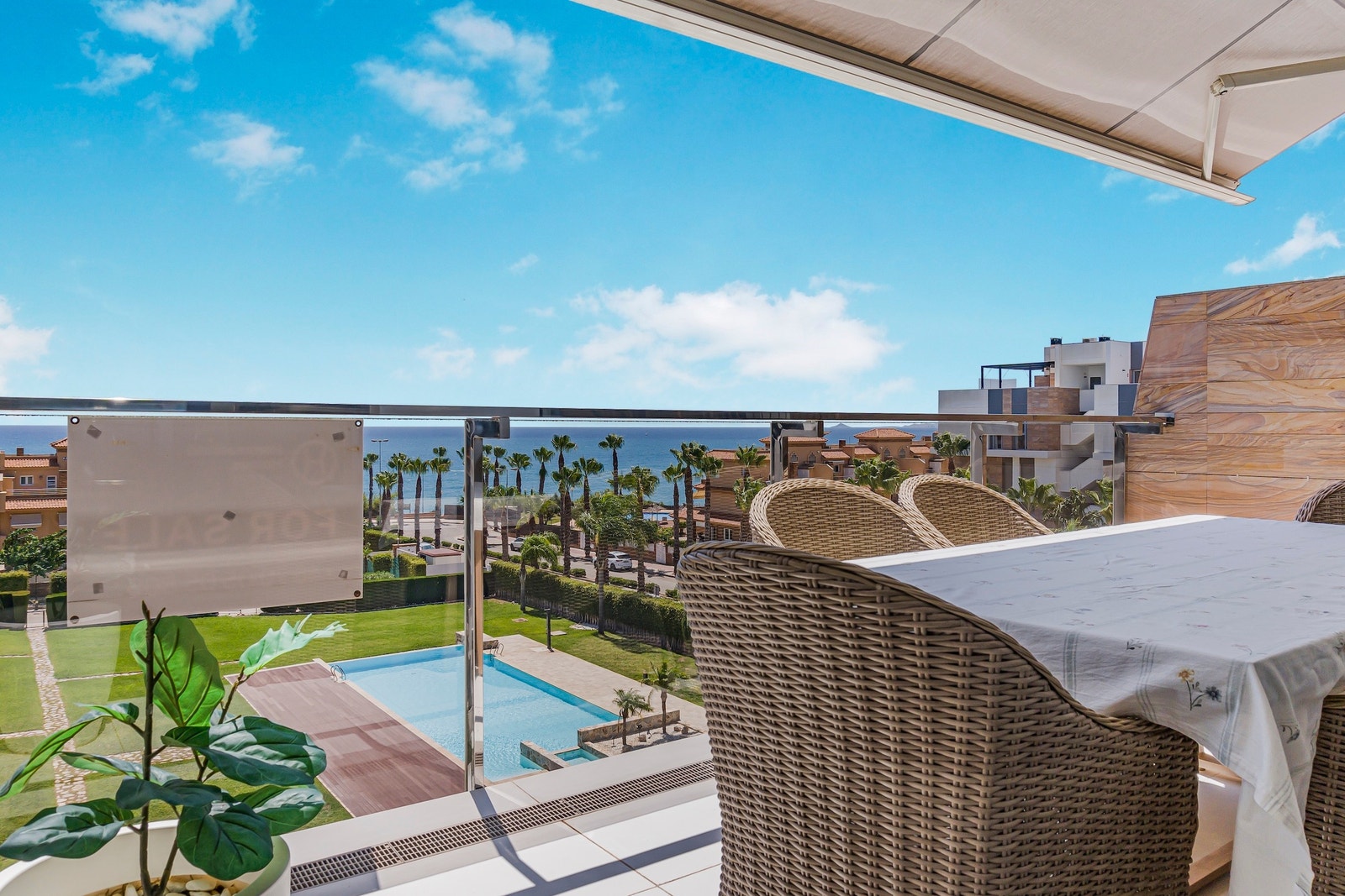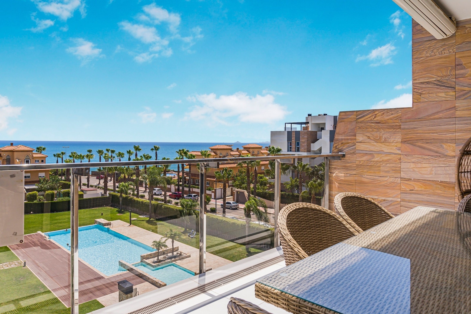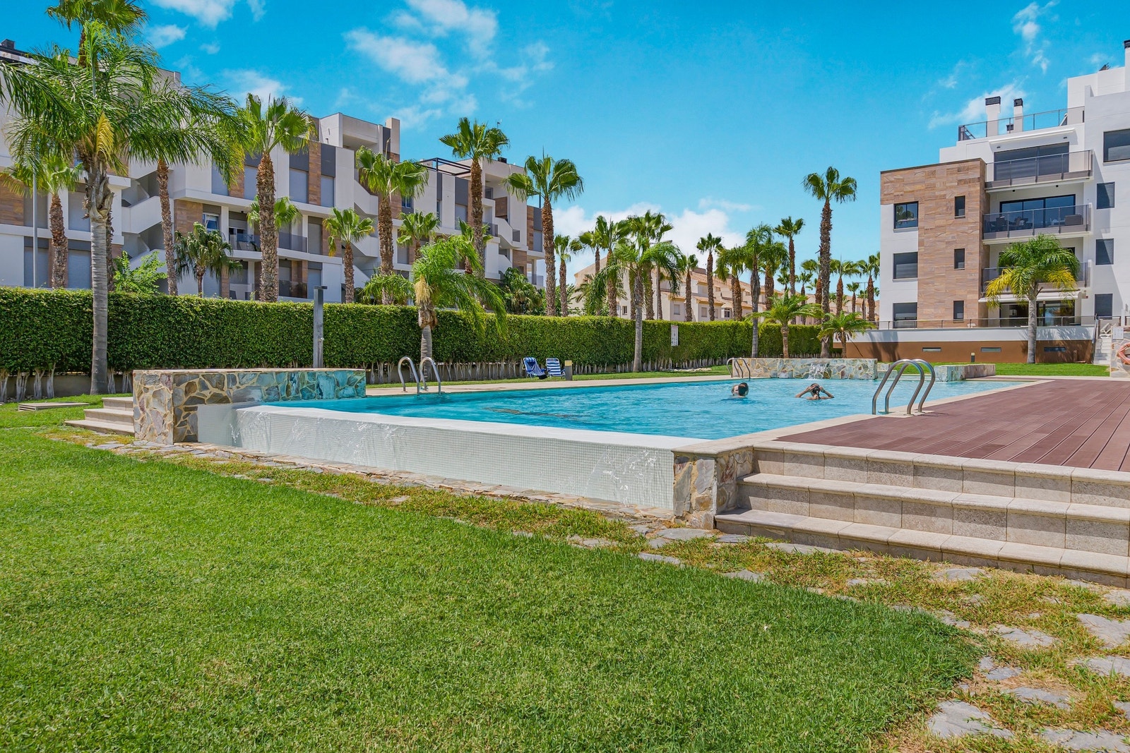 I ettertraktede Cabo Roig, kun et kort gangavstand fra strand, restauranter, marina og servicetilbud, ligger denne toppleiligheten med store utearealer og utsikt mot Middelhavet. Området regnes som et av de mest etablerte og populære langs Orihuela Costa, med et godt miljø året rundt og nærhet til alt man trenger i hverdagen og i ferier.