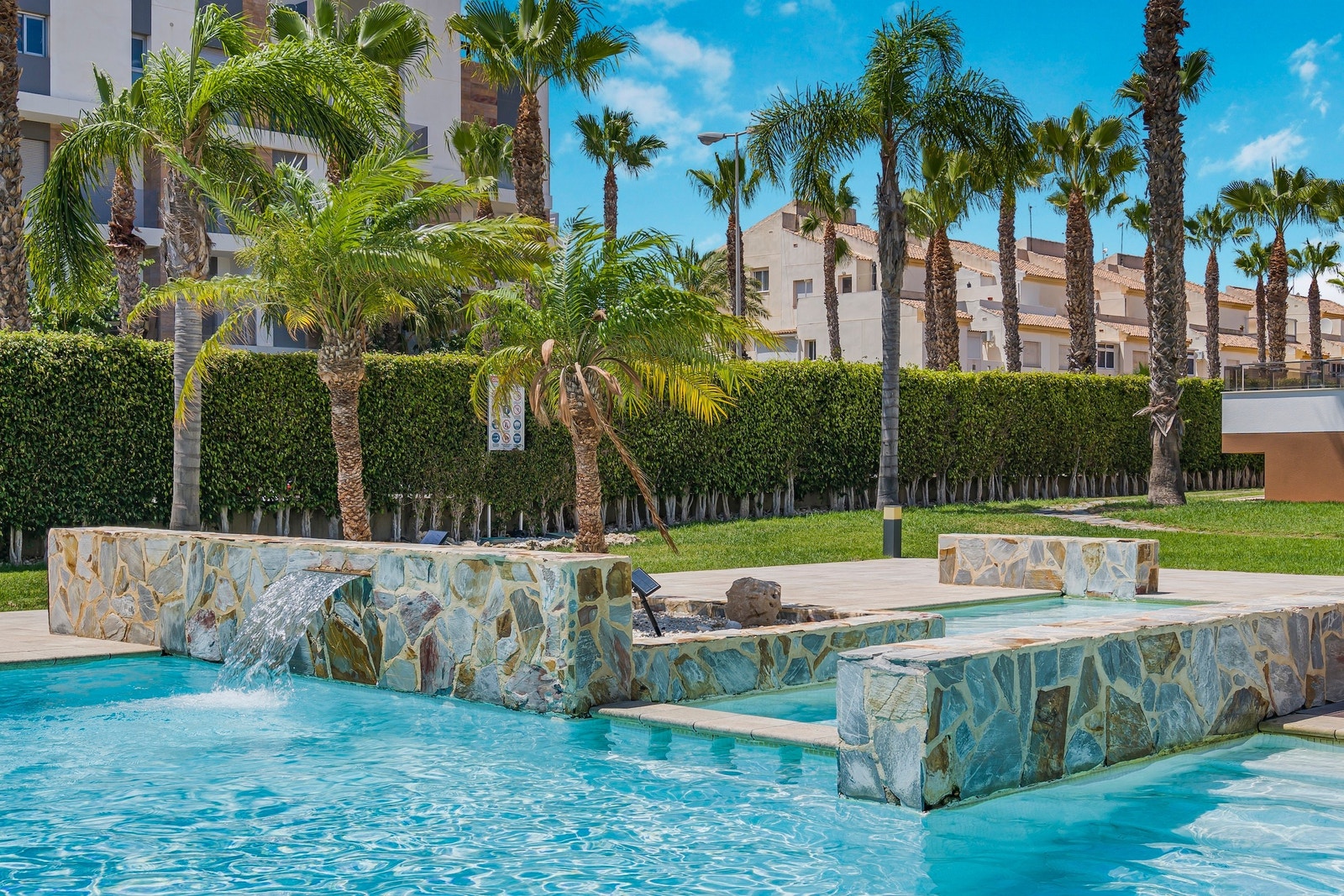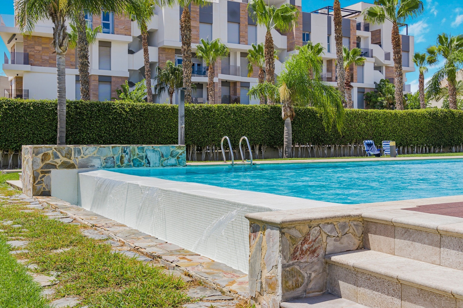 Boligen ligger i et velholdt anlegg med et hyggelig felles bassengområde omgitt av grøntområder og palmer. Det medfølger privat parkeringsplass i garasjekjeller samt eget bod-/lagerrom, noe som gjør boligen praktisk også for langtidsopphold.
