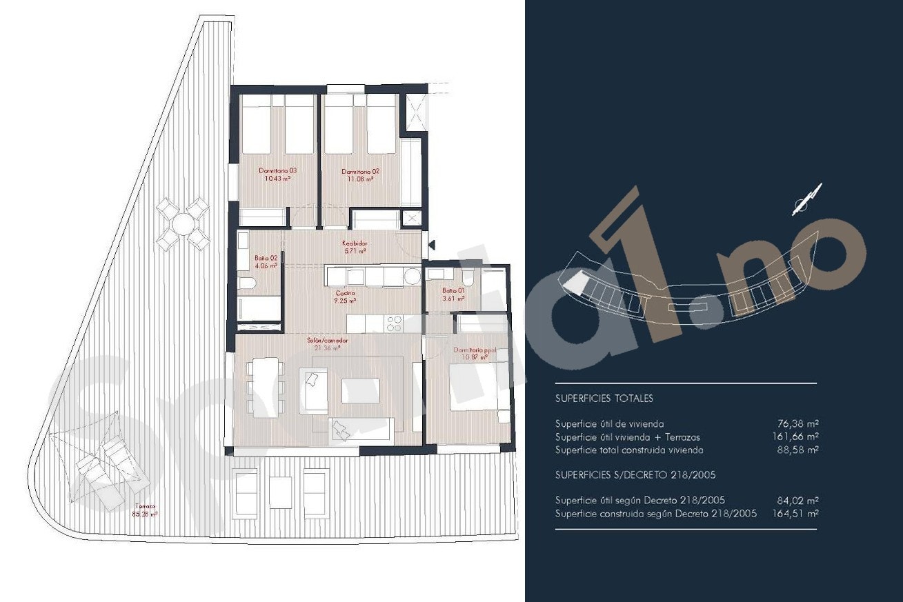 Bebyggelsen består av to elegante bygg i halvsirkelform, med leiligheter fordelt på første etasje, mellometasjer og penthouse. Prosjektet tilbyr boliger med 2 og 3 soverom, tilpasset både helårsbruk og ferie. Flere av boligene har havutsikt.
